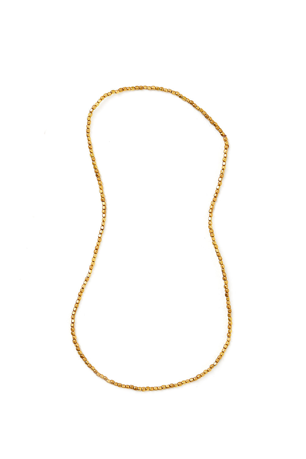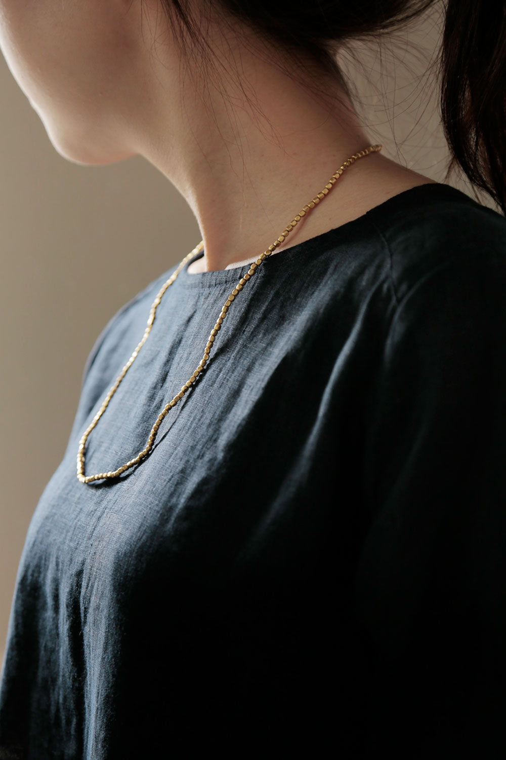 Each brass bead is handmade in India, so they are just a little uneven, giving a variety of looks. This short necklace can be worn as is, or wrapped around the wrist as a bracelet.