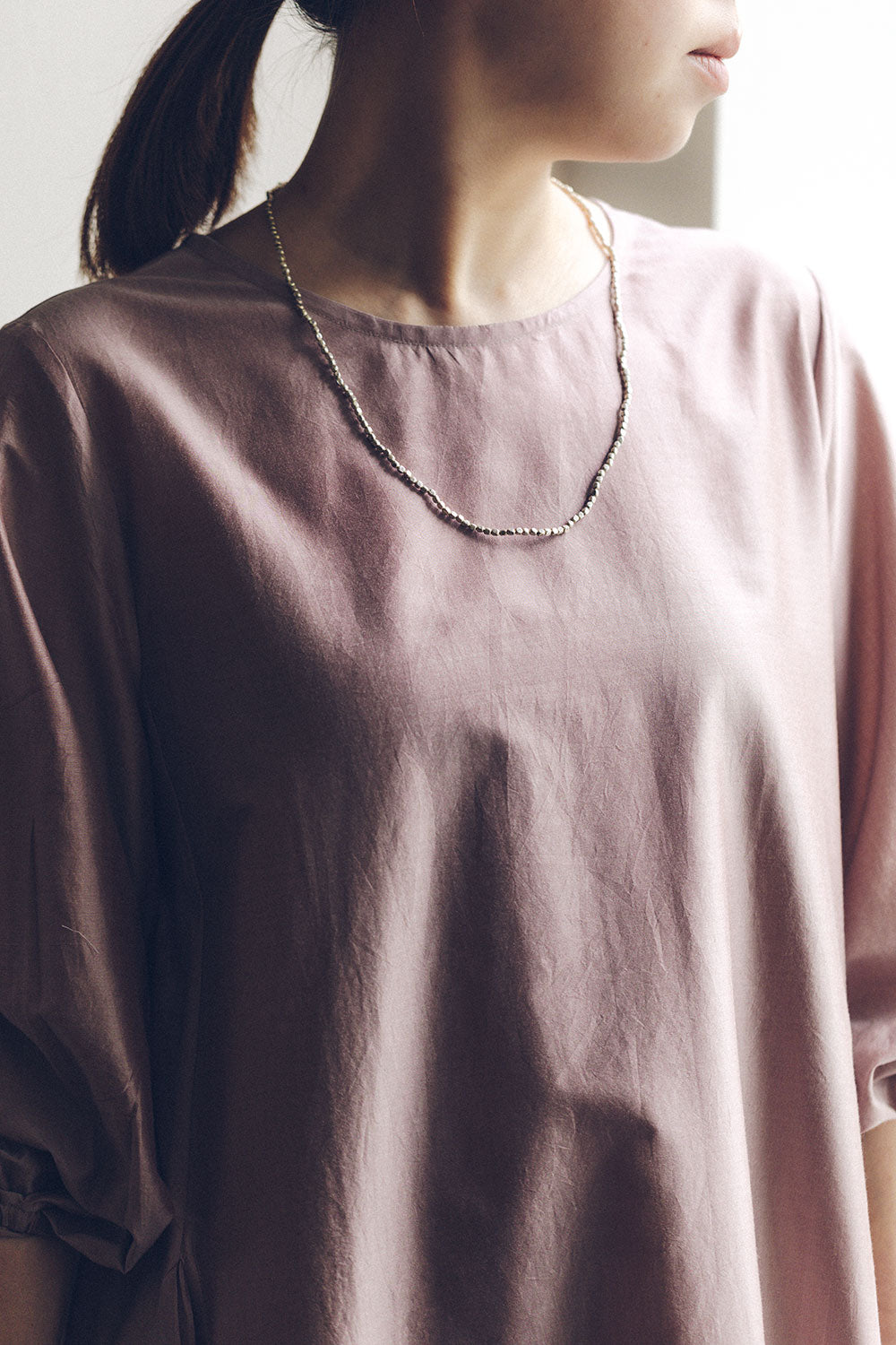 Each silver plated brass bead is handmade in India, so they are just a little uneven, giving a variety of looks. This short necklace can be worn either as is or wrapped around the wrist as a bracelet.