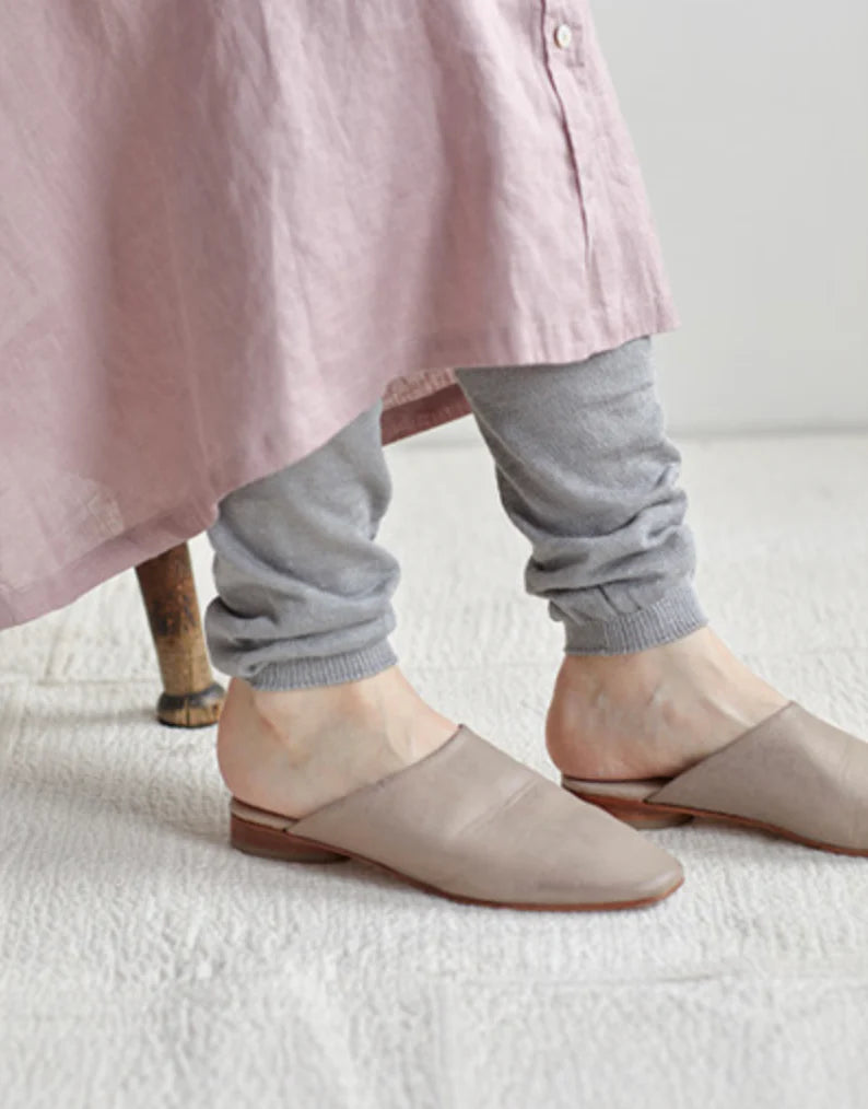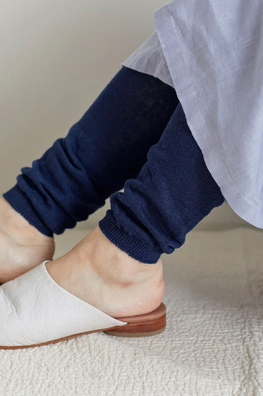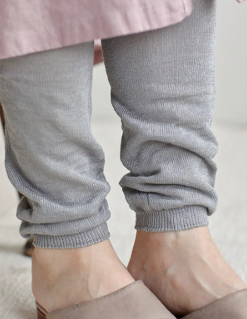 A light weight linen leggings with comfortable elastic waist and gathered ankle cuff.