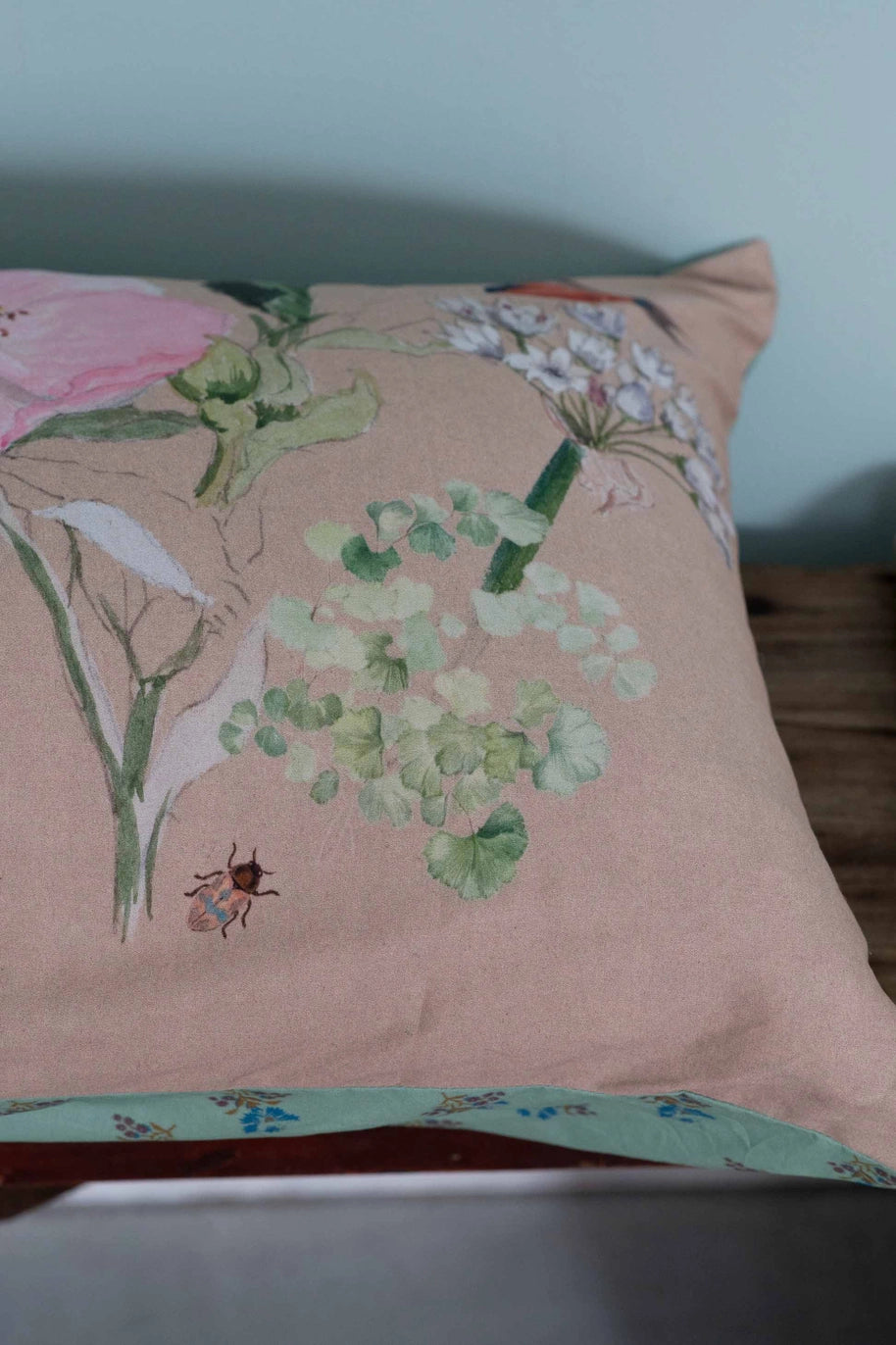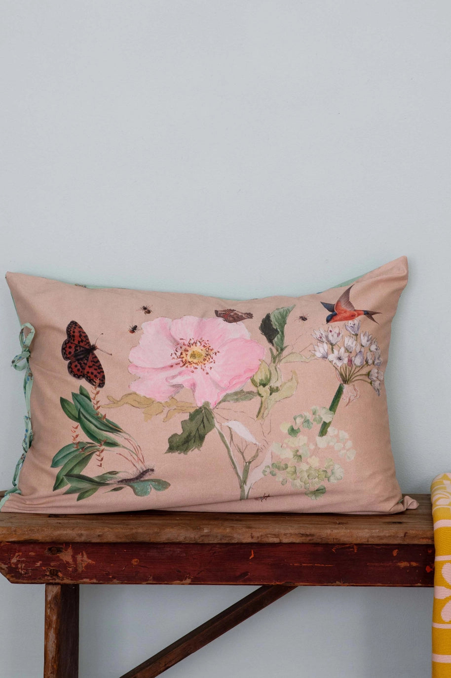 This reversible pillowcase set features an assortment of vintage botanical flower, bird and insect studies arranged on kraft paper coloured background with Columbine small vintage print on the reverse side of the pillowcase. Perfect to mix and match by using either side. Side ties