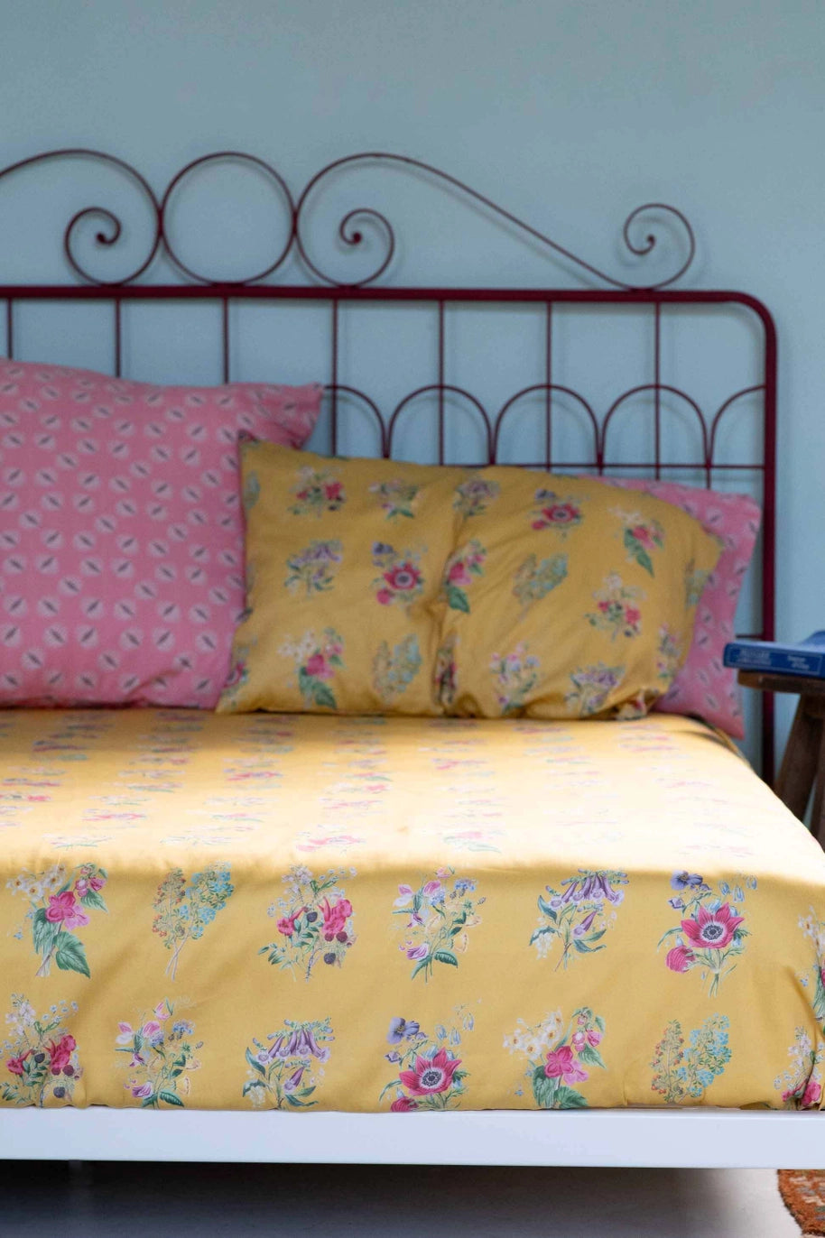This design is based on a combination of botanic illustrations on a background of mustard yellow.