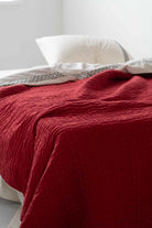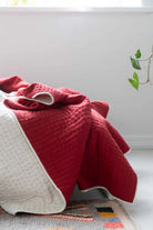 Deep garnet red on one side and unbleached natural cream on the other this richly coloured Kantha quilt will compliment several bedroom and living room colour palates.