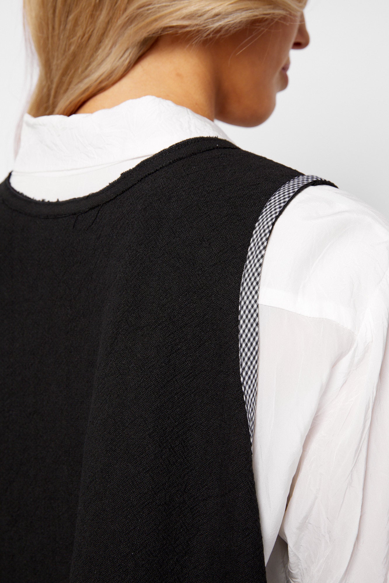 The arm scoop is finished with a gingham trim visible on one side, invisible the other.