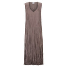 Effortlessly fluid and richly textured. Crafted from 100% Soft Reverse Satin with Alquema’s signature crushed pleating, it offers a softly sculpted silhouette that moves with the wearer. The sleeveless design and V-neckline create a flattering, open shape, while the midi length adds a timeless sense of style. Light yet luxurious, the Havana Dress brings a quiet confidence to every moment.