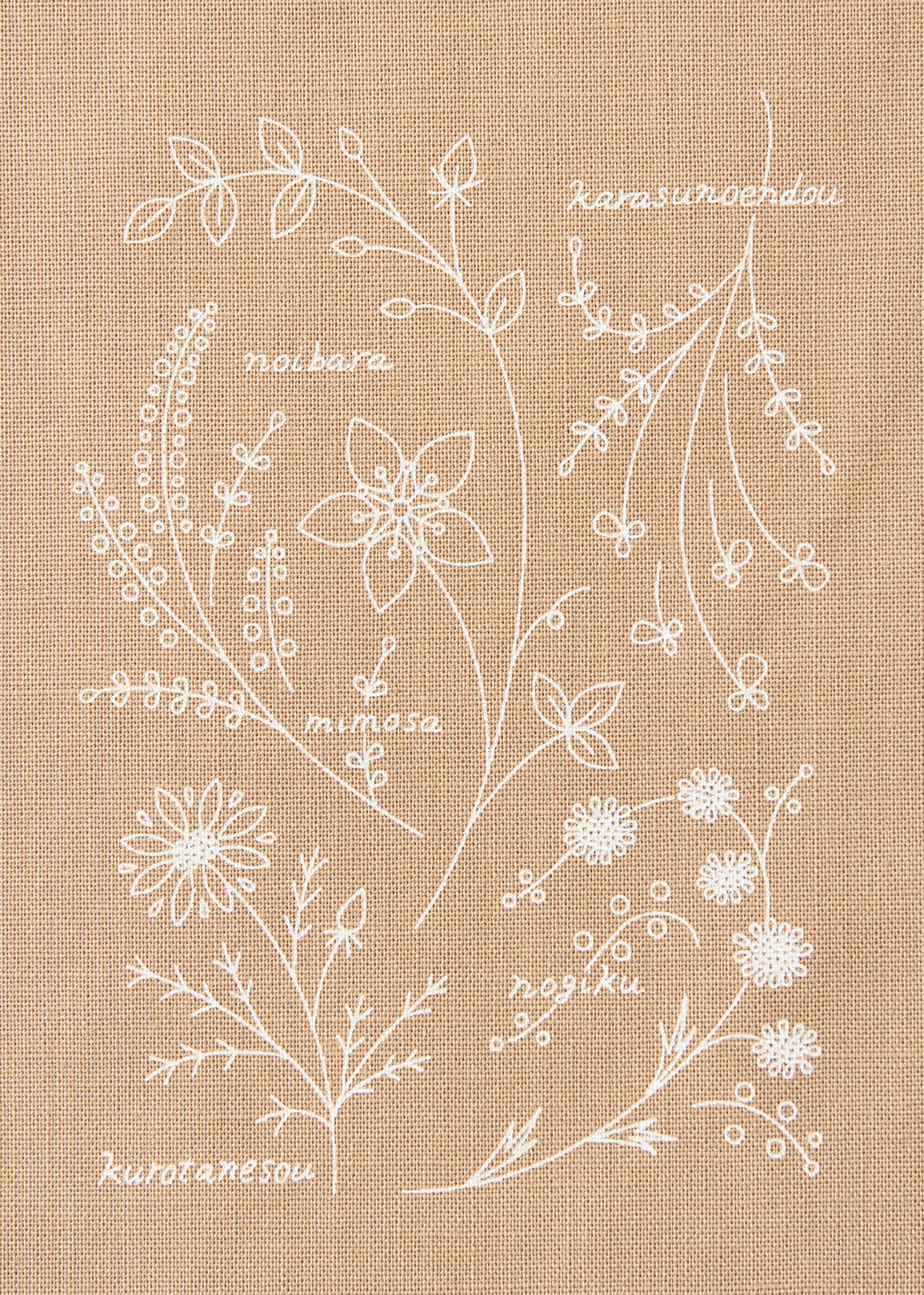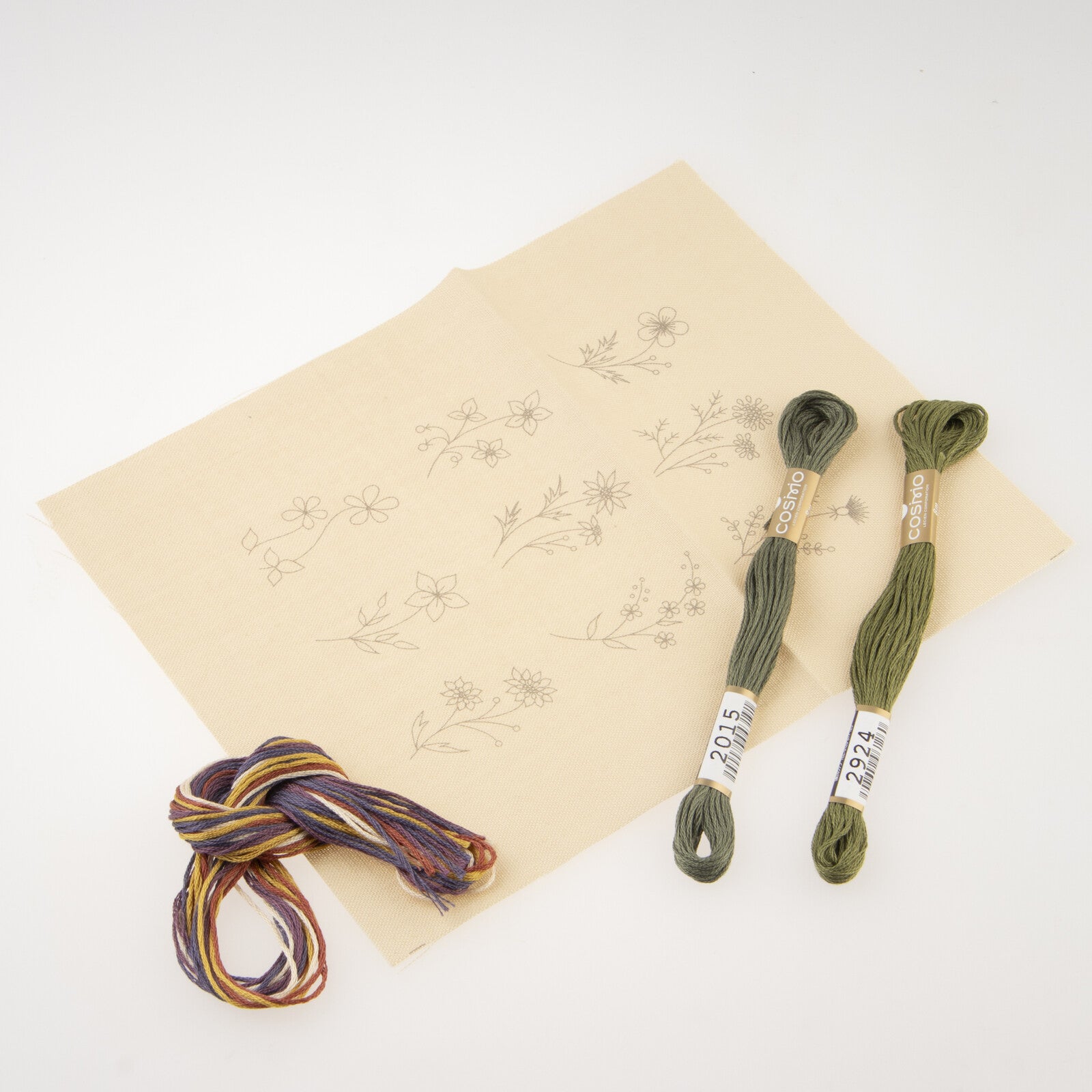 atelier de nora artist collection (small flower book, mocha beige) artist collection (kit contents) *cosmo 25 embroidery thread (100% cotton) *embroidery fabric (100% cotton) *printed patterns *stitching instructions *printed patterns with waterproof ink *The size of the cloth: approx. 22.5cm x 17.5cm