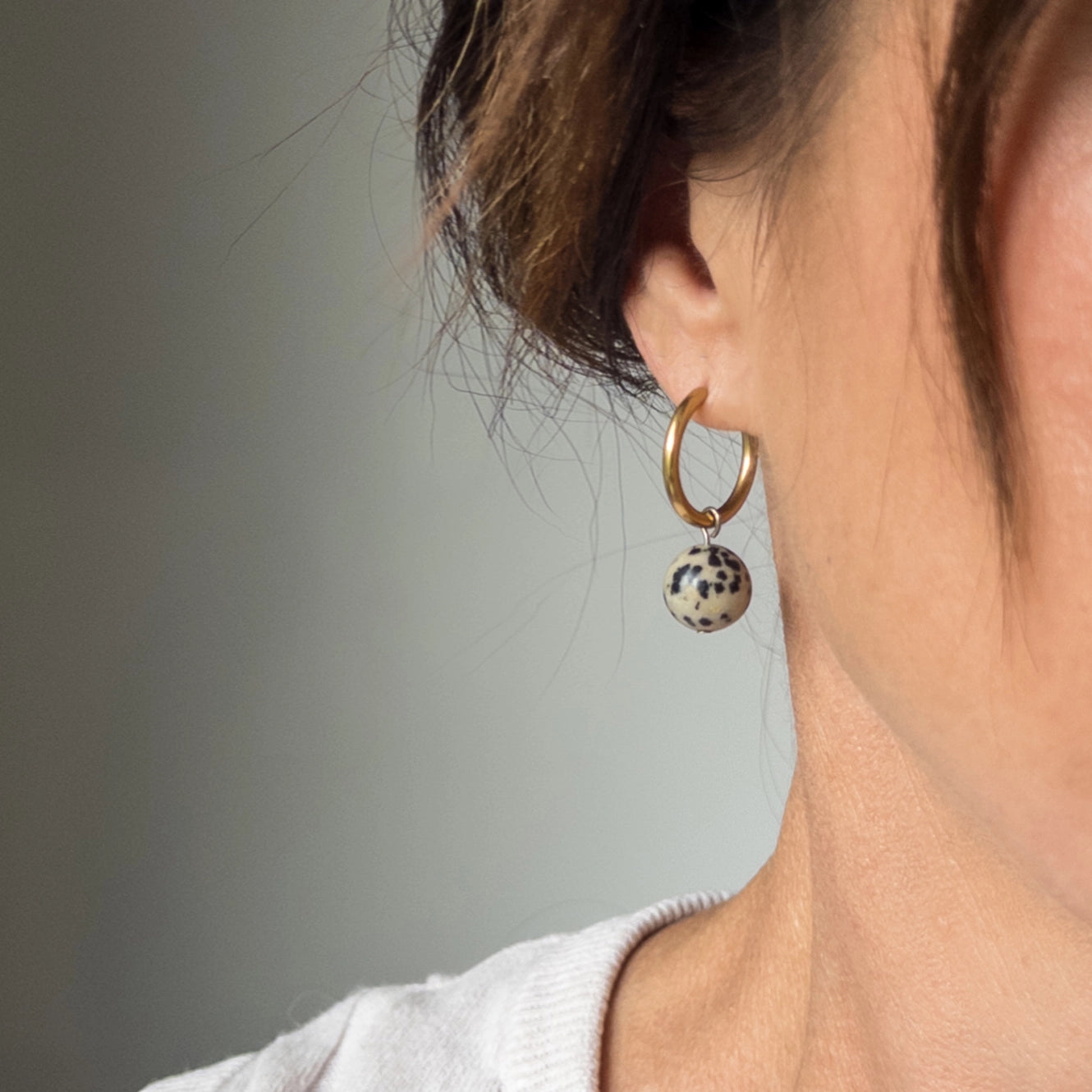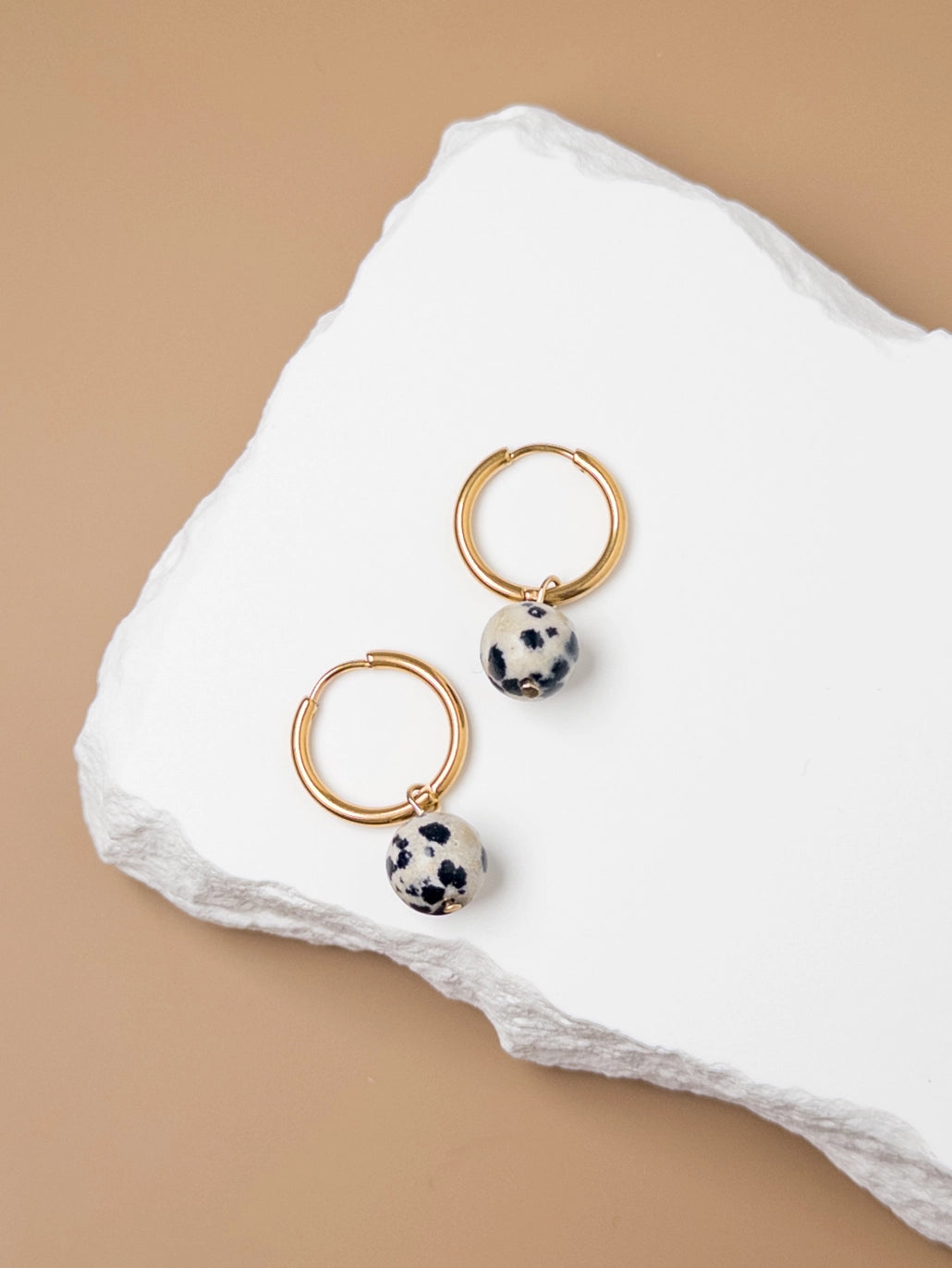 HUGGIE EARRINGS WITH DALMATION JASPER