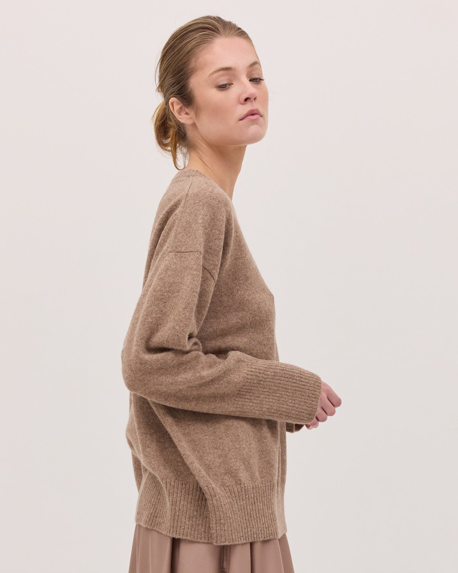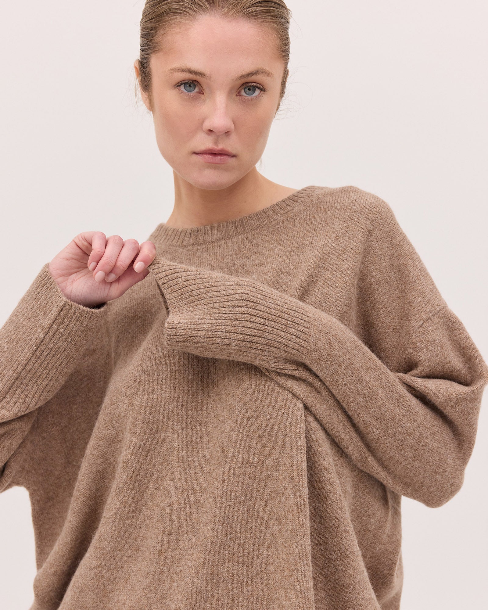 A timeless essential, our crew jumper is crafted from a luxurious blend of 90% alpaca and 10% cashmere. The yarn is undyed, with each piece showcasing the natural tones of the fibre—no dyes, no chemicals, just beautifully blended shades.