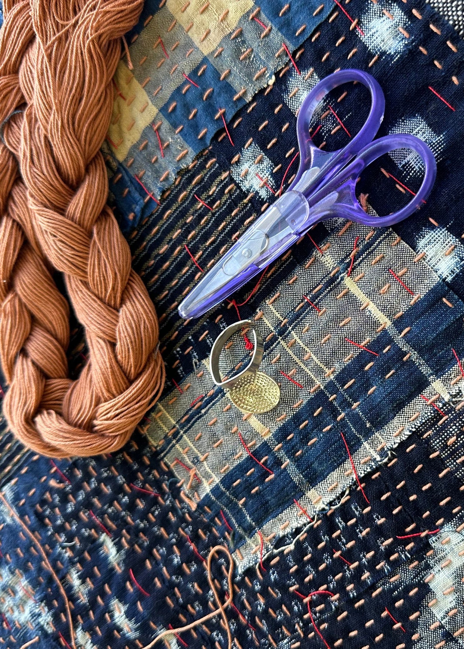 Join me at the large work table in my shop with a small group of like minded textile and hand craft enthusiasts for a day of sashiko stitching. We will commence with a brief history of the cultural significance and origins of this simple and functional running stitch.