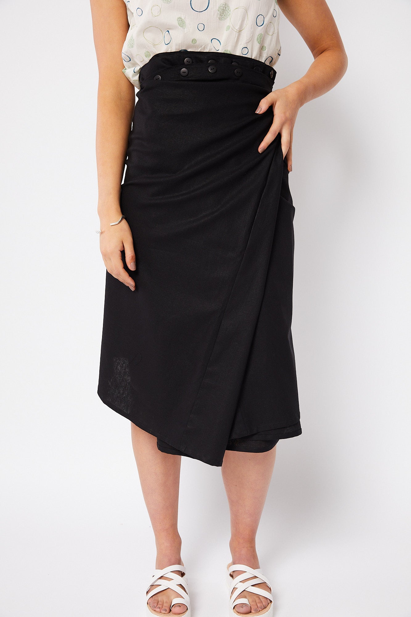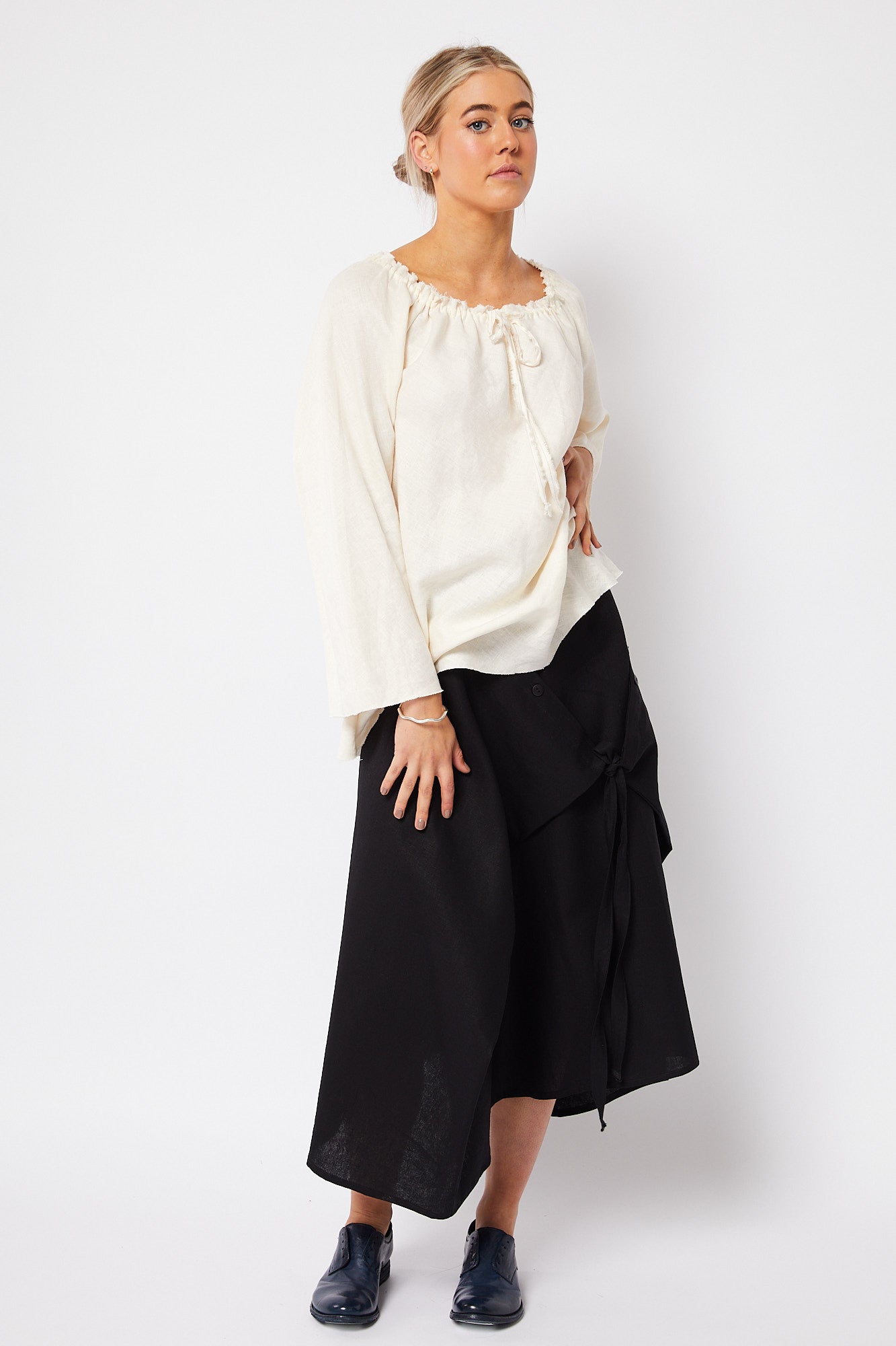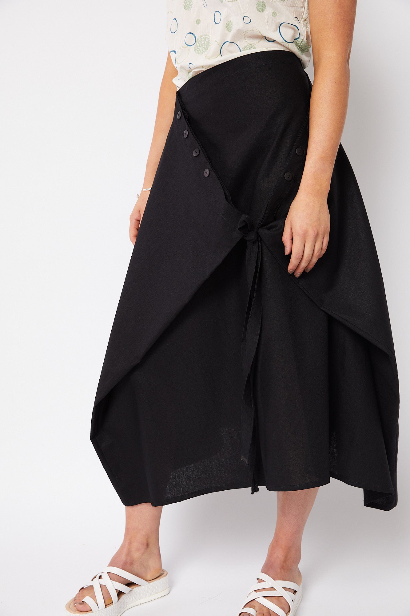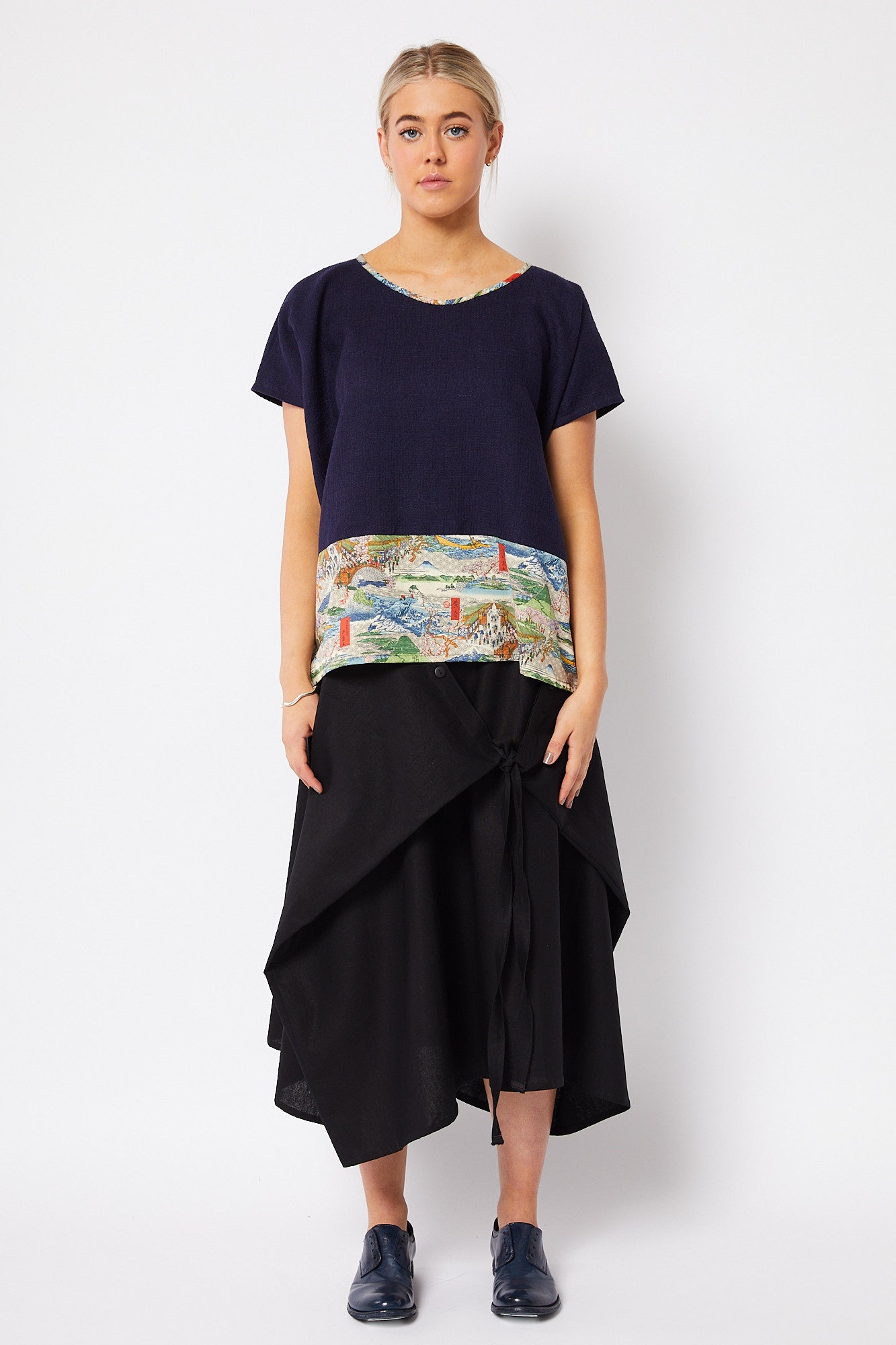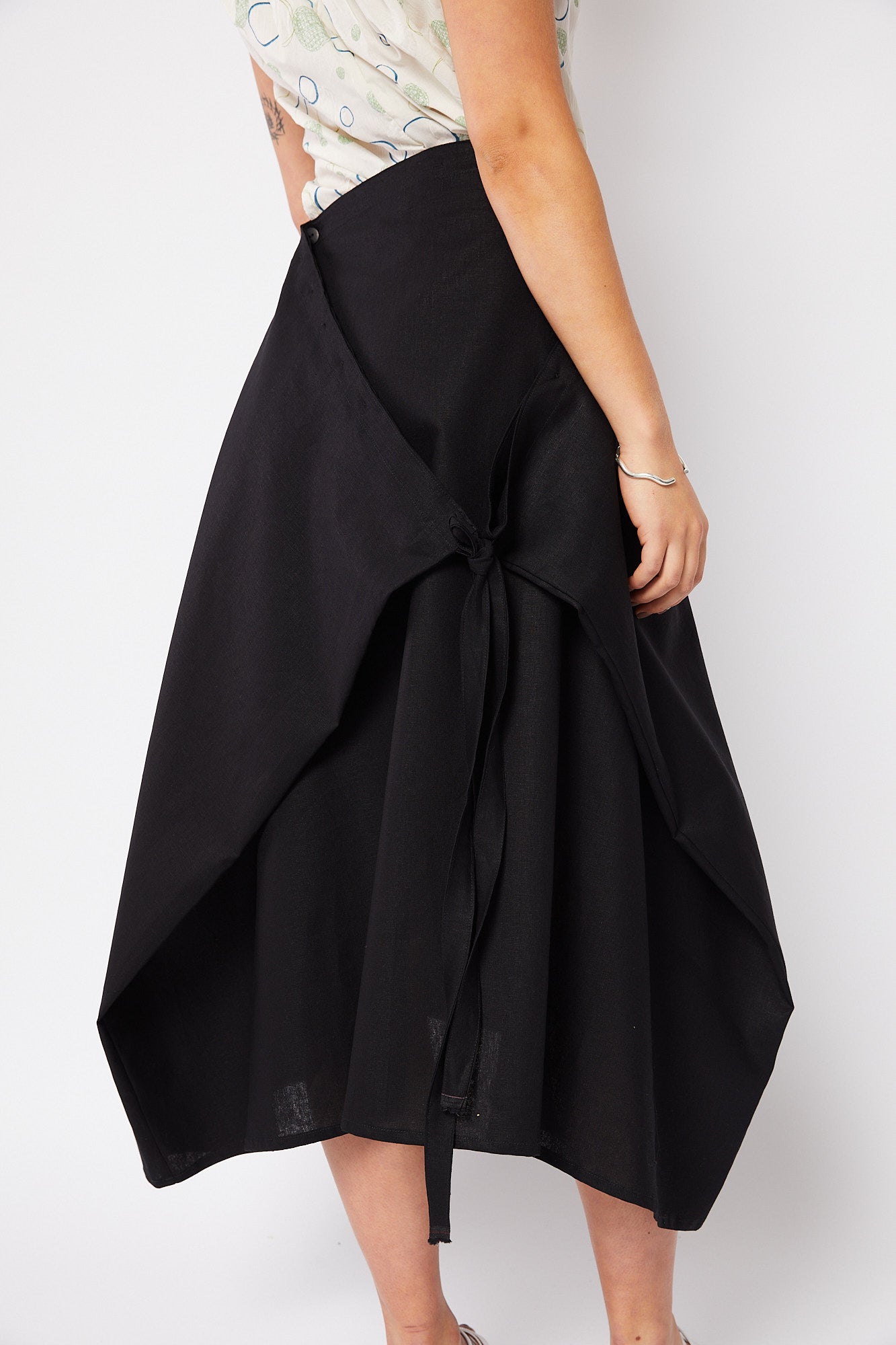 Based on the Japanese sarong which consists of a closed loop of cloth not an open rectangle, this versatile piece has no official front, back or side and can be moved around the waist/hip to achieve different silhouettes.