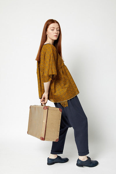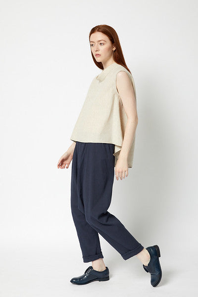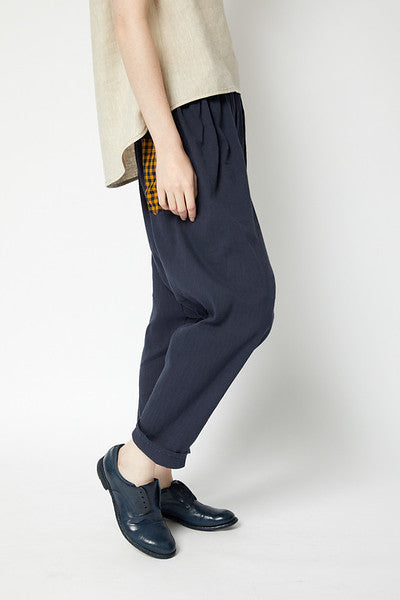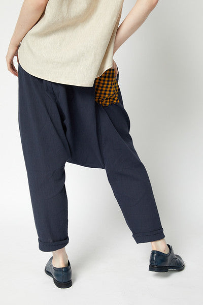 Drop crotch sarouel pant with elasticised waist. A classic Japanese style making for a contemporary edge to any outfit.
