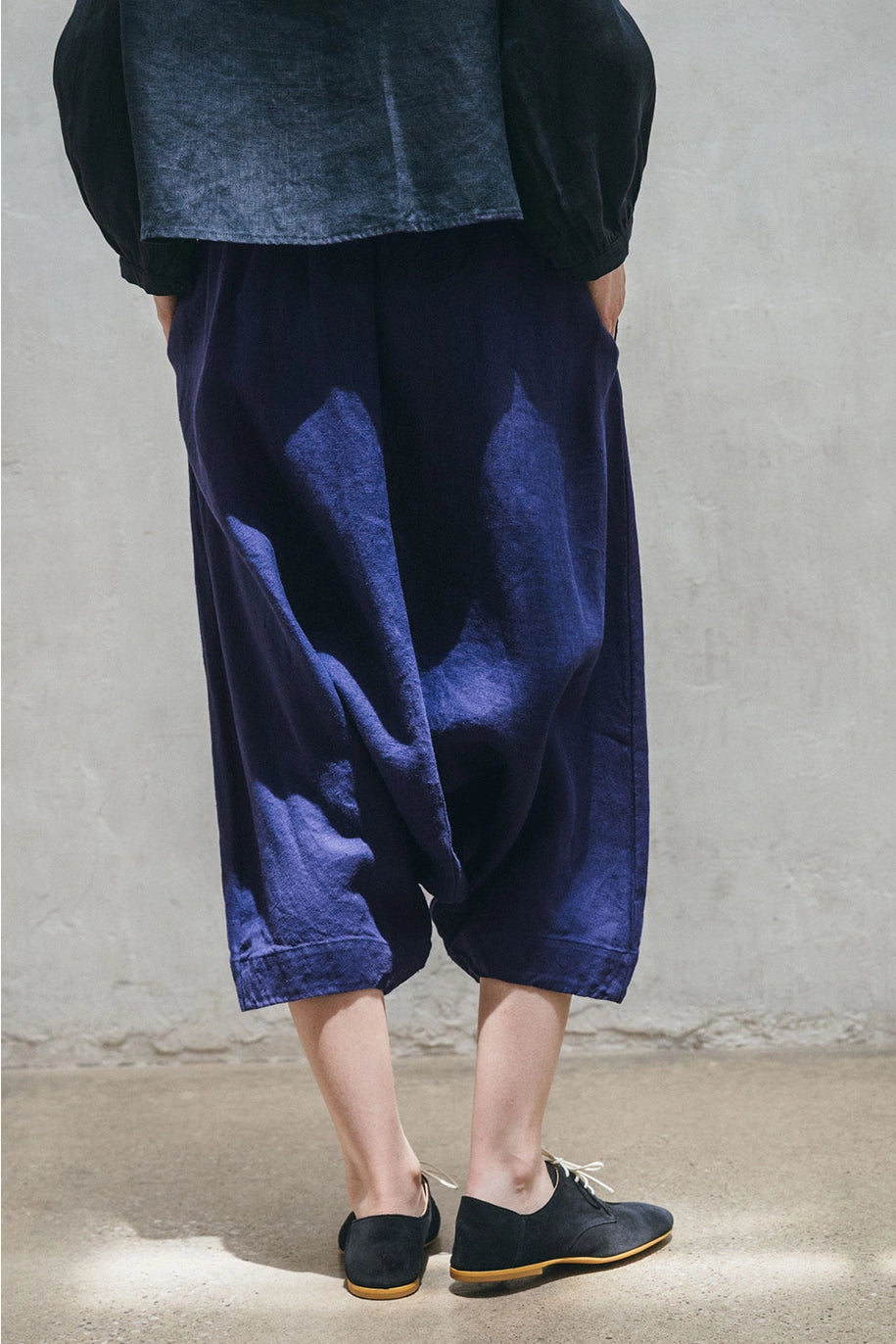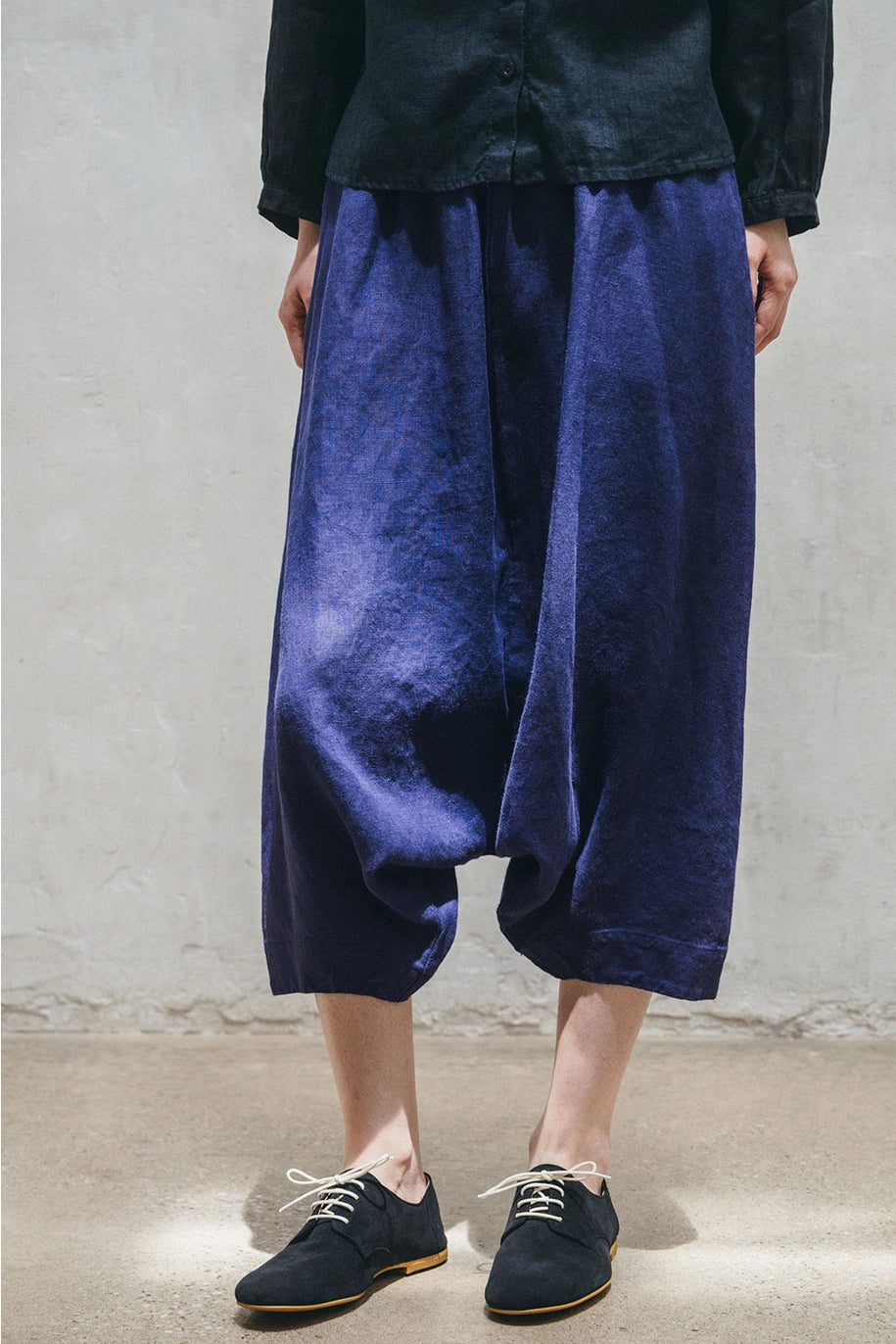 These relaxed-fit sarouel pants offer the ease of movement and comfort of casual wear, while the skirt-like look adds a fresh impression. The roomy waist and elastic band provide a relaxed fit that doesn’t cling to the body. Side pockets enhance functionality. Great with knits, cut-and-sew tops, or shirts, this piece becomes a focal point of your outfit, even when styled simply.