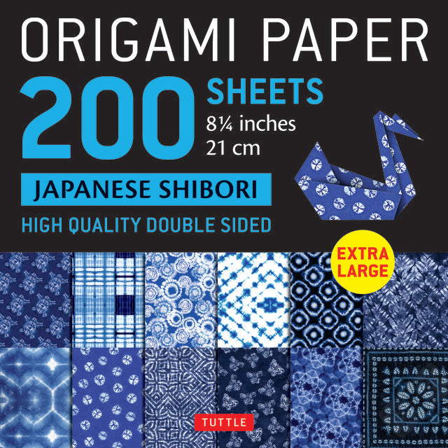 This pack contains 200 extra large (8.25 inch) origami sheets printed with indigo shibori designs.