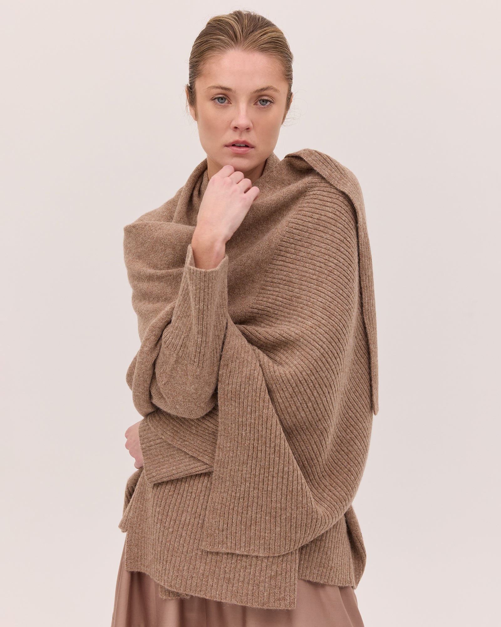 A timeless essential, the classic scarf is crafted from a luxurious blend of 90% alpaca and 10% cashmere. The yarn is undyed, with each piece showcasing the natural tones of the fibre—no dyes, no chemicals, just beautifully blended shades.