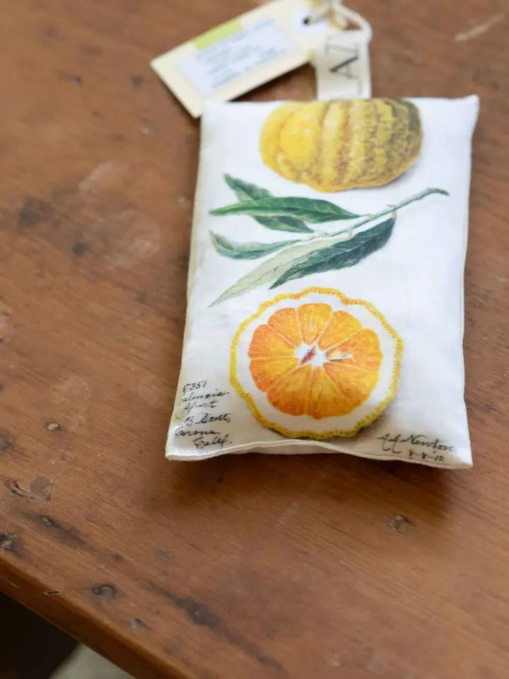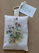 Scented drawer sachets from Lazybones featuring vintage and nature inspired prints on organic cotton. The back is unbleached calico. Keep your wardrobe smelling delightful.