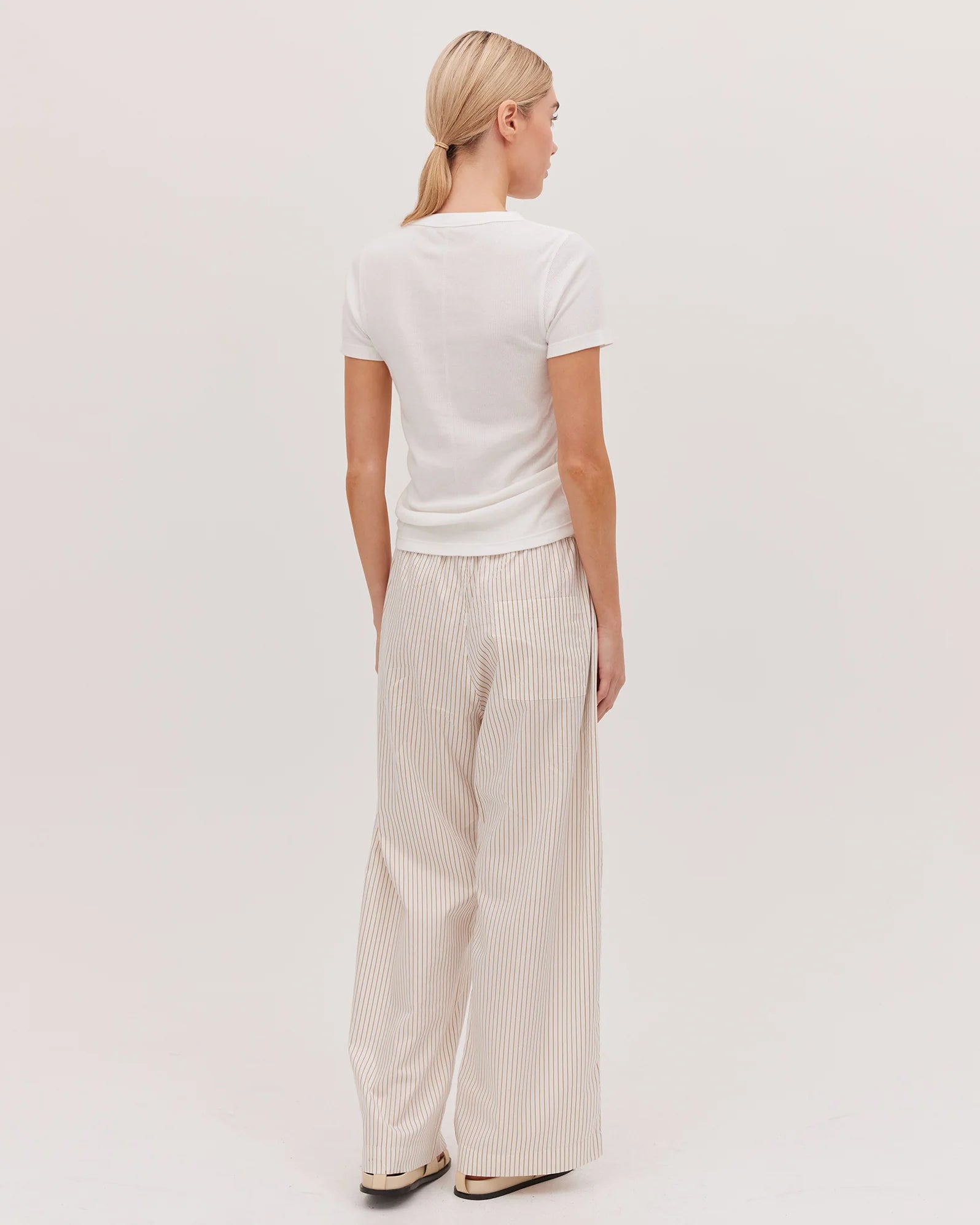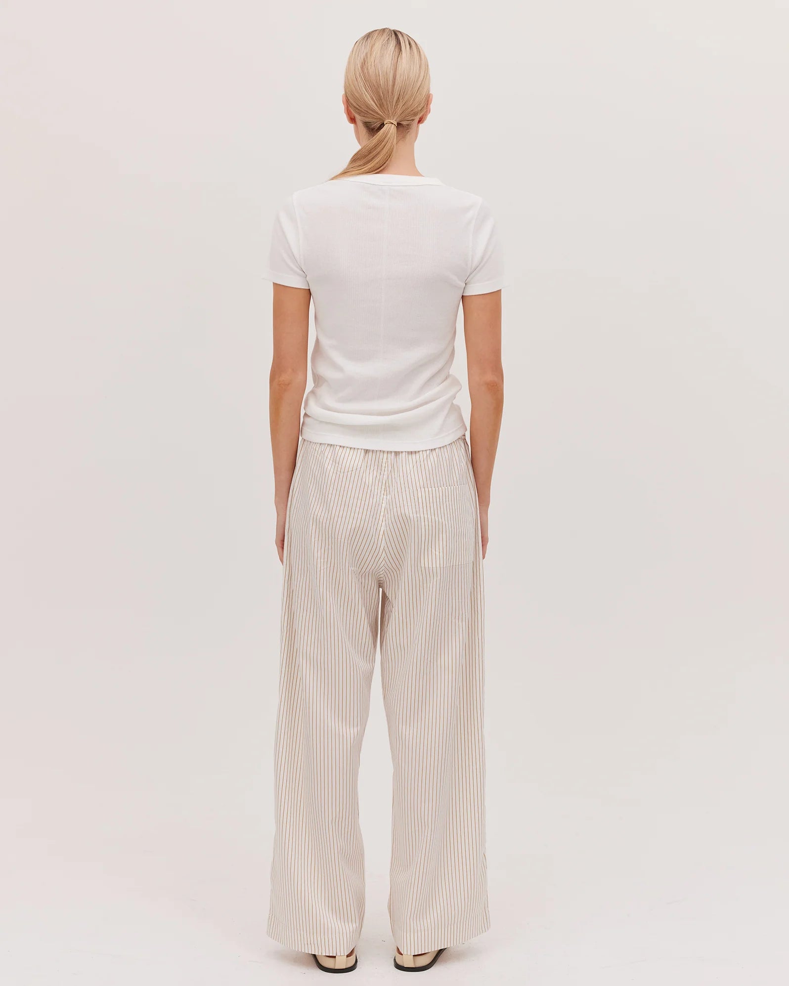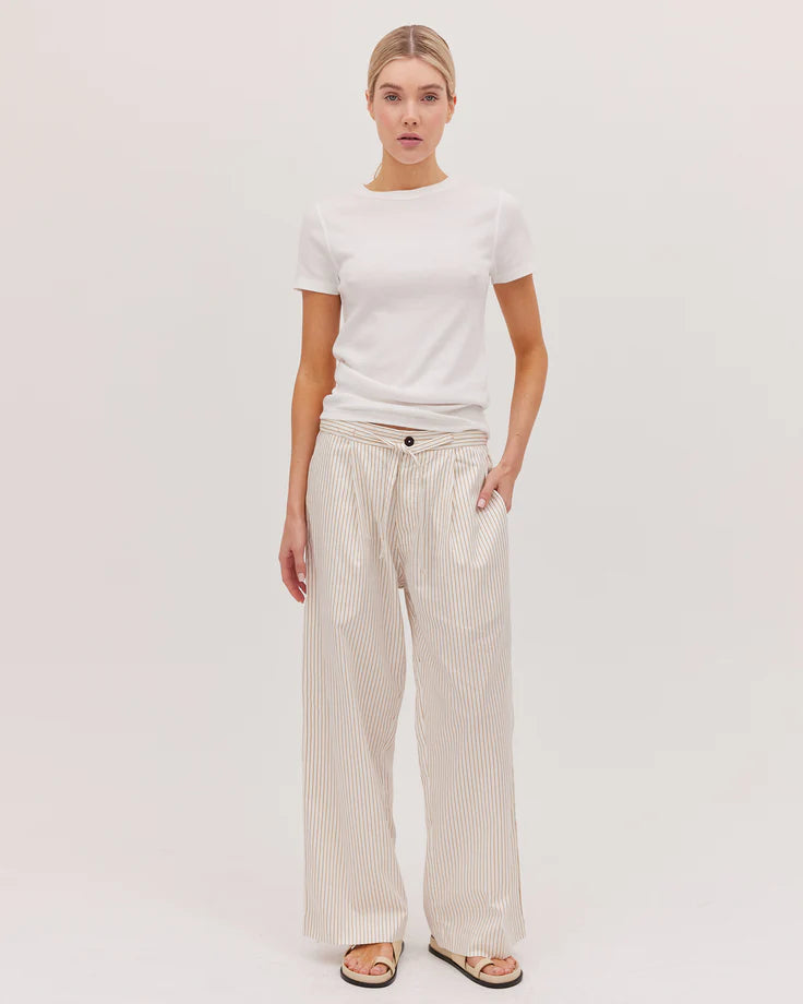Introducing The Drawstring Tailored Pant, the perfect pant to wear on any occasion. A Single front pleat & self tie drawstring provides an effortless shape to these pants, which sit mid waist and have a wide leg silhouette. Beautifully crafted in our signature cotton.
