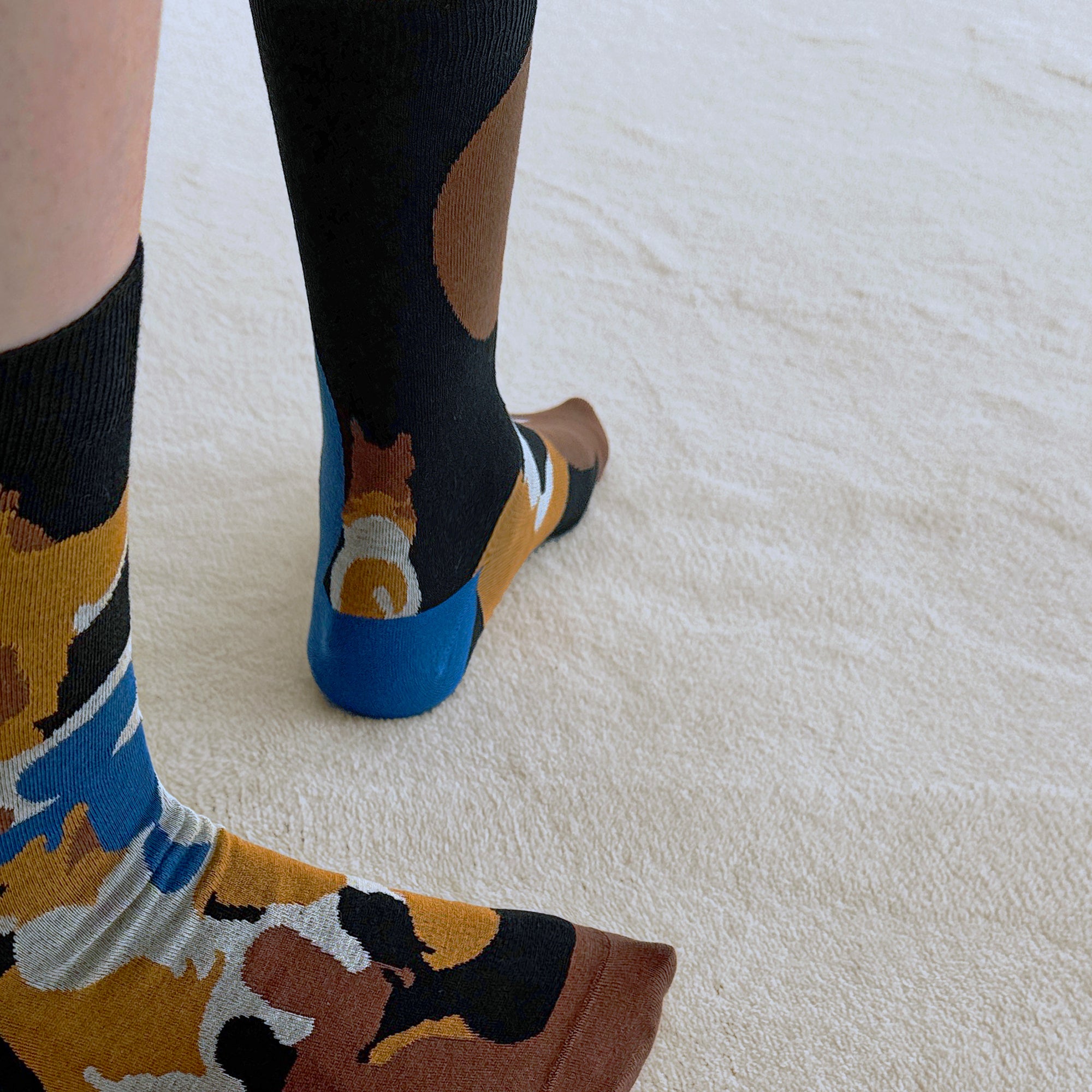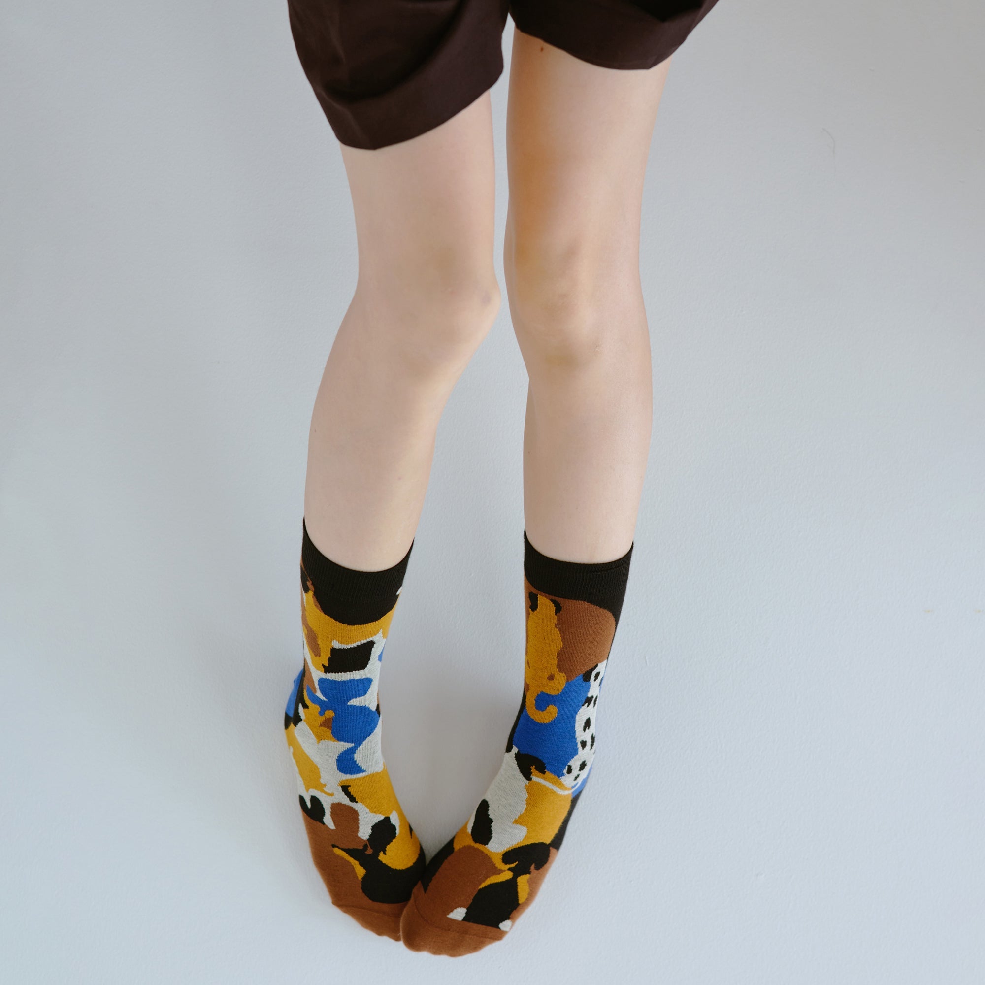 Korean designer Jeon designs and creates kooky socks and tights for fashion forward adventurous folks who don’t take life too seriously.