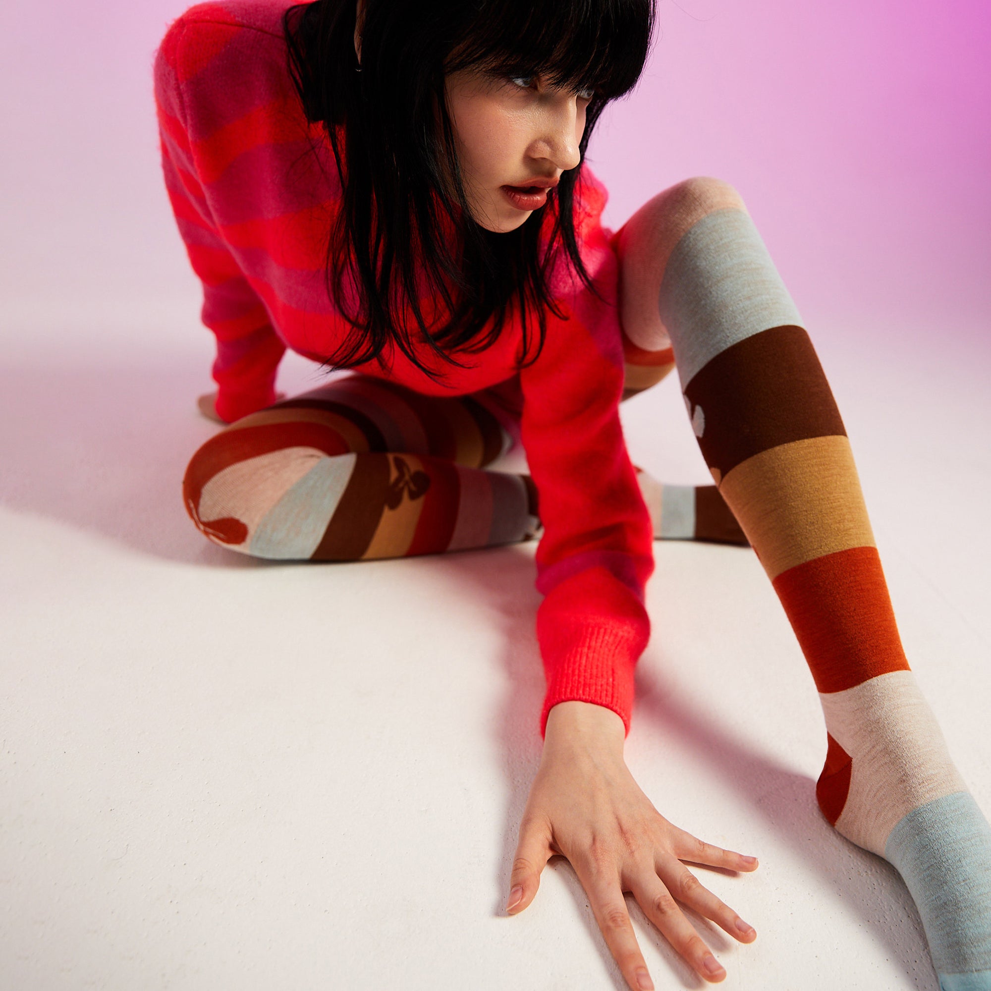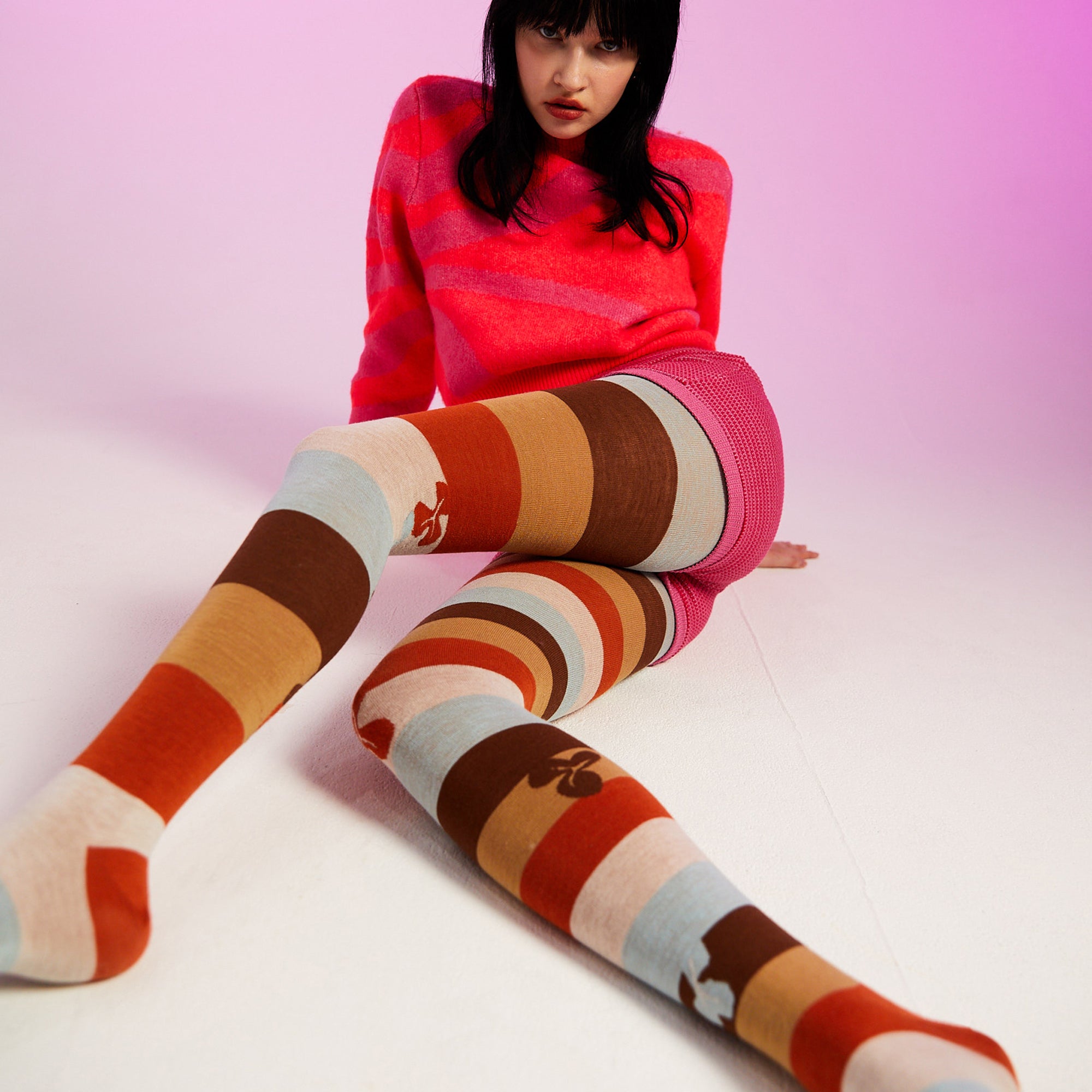 Manufactured at a sock factory in Nara, these tights are easy to wear and will create an eye catching feature to any outfit.