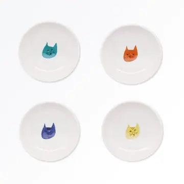 A set of four small plates decorated with tori in soft colors. These small plates can be used as accents on the dining table, as small plates for children, as plates for tea cakes for guests, or for other purposes.