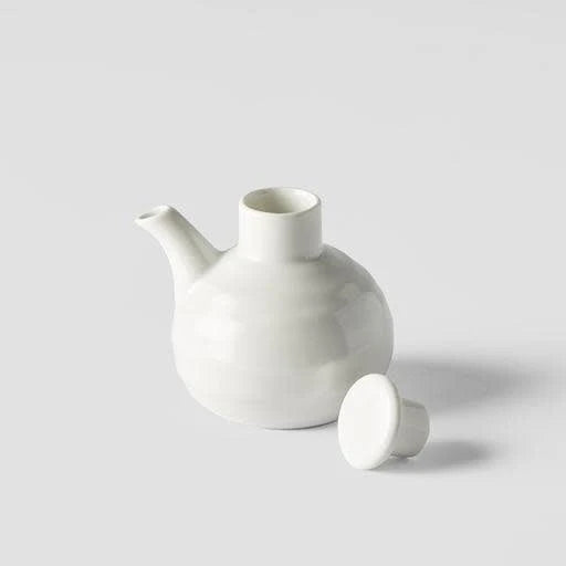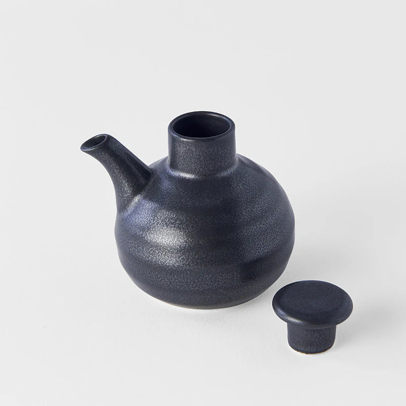 Enjoy this modern design soy pourer- a handcrafted piece that combines Japanese tradition with contemporary design. Perfect for soy sauce, vinegar, or other seasonings. Fired at high temperatures and hand-finished in Japan, each pot is carefully crafted to offer seasoning precision for Asian cuisine.