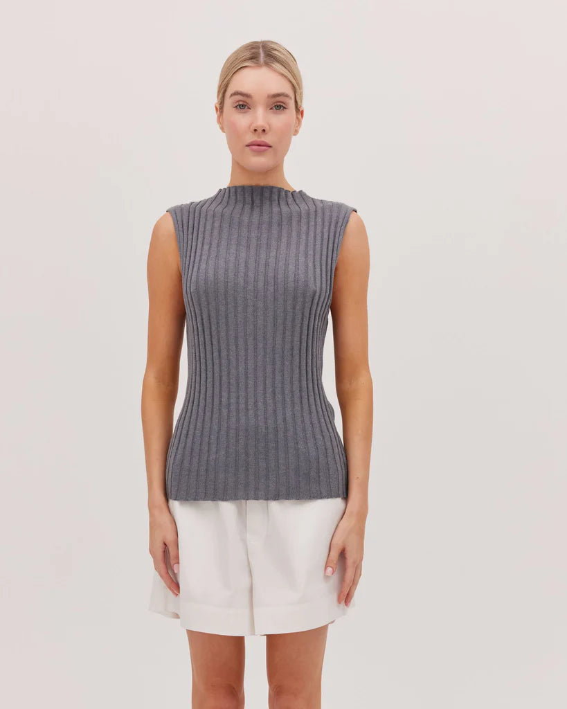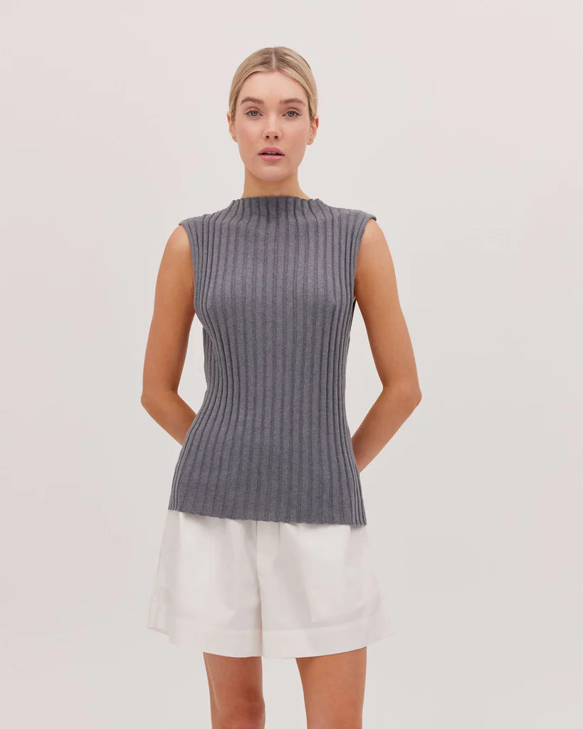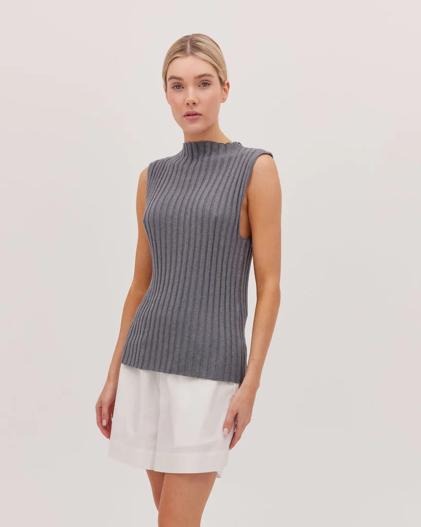 The Funnel Neck Tee is a lightweight knit, designed to be slightly fitted with a flattering funnel neck, raw hem and soft sleeves, to create an elegant silhouette.