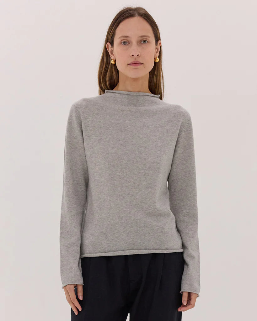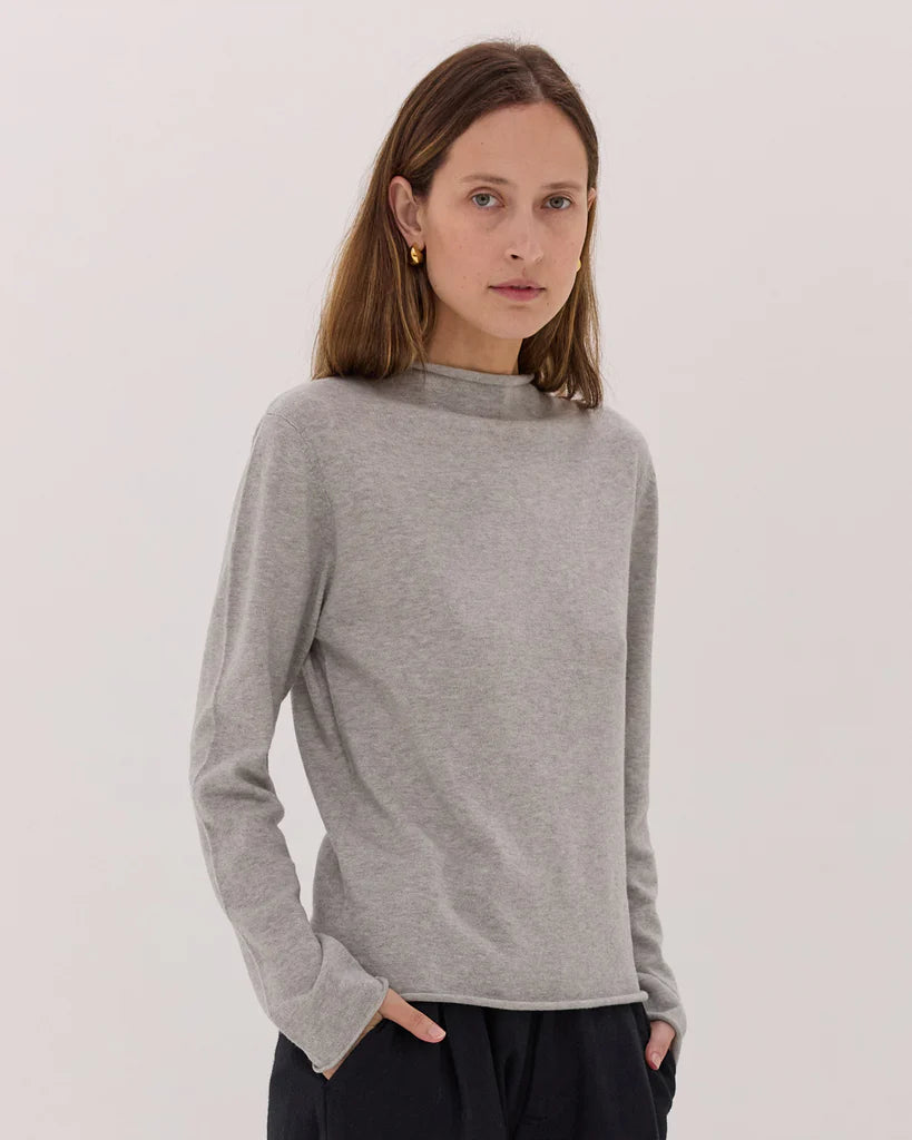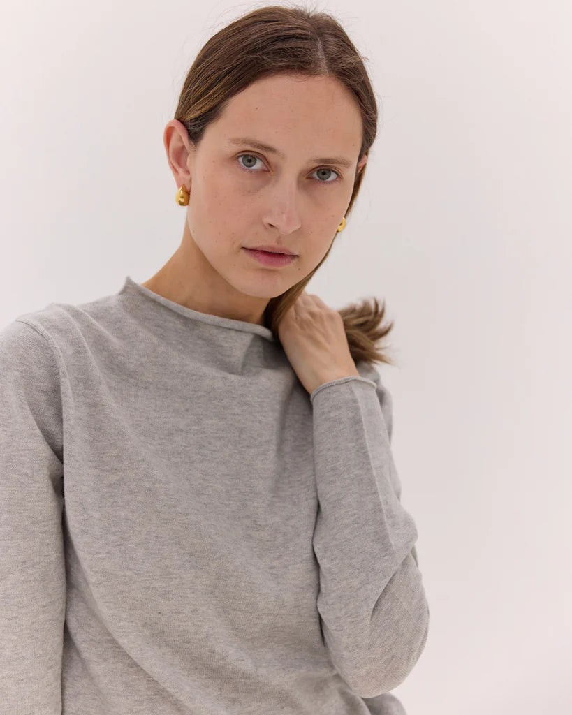 Timeless and sophisticated, The Funnel Neck Top blends comfort with modern elegance. Its luxurious blend of soft organic cotton-merino wool and relaxed funnel neckline create an effortless silhouette—perfect for layering or wearing on its own.