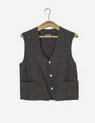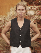 Waistcoat in 100% linen. Mother of pearl buttons and two pockets at front. The waistcoat is with a straight, leisure fit. Wear as a top with bare arms or layer over shirts and blouses. Fully lined with linen.