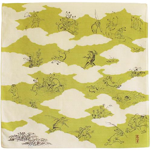 The funny animals seen on this Furoshiki Chojyugiga patterns actually come from ancient Japanese frescos as seen in Kyoto temple Kôzan-ji. There is an ongoing debate among specialists regarding whether those were the starting points of manga culture in Japan!