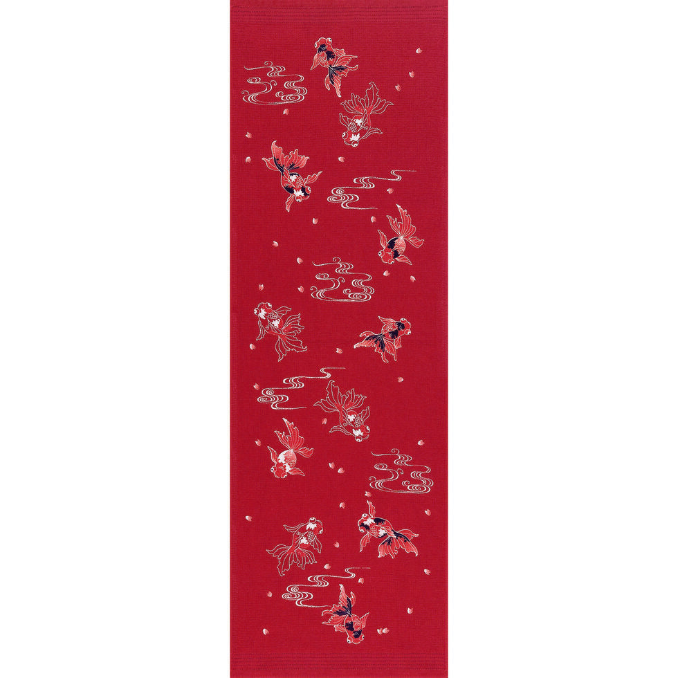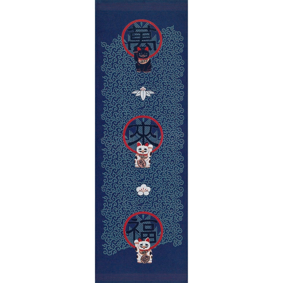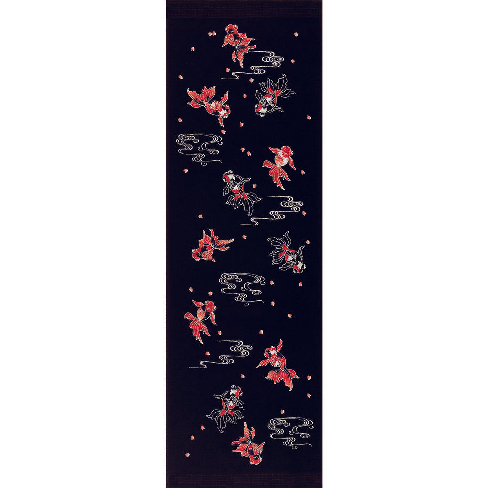 These beautiful Tenugui are decorated by the technique of dying and discharge at the same time. At first they dye the cloth without a pattern and then make a partial discharge dyeing for putting a pattern on it. This highly elaborate process takes a lot of time.