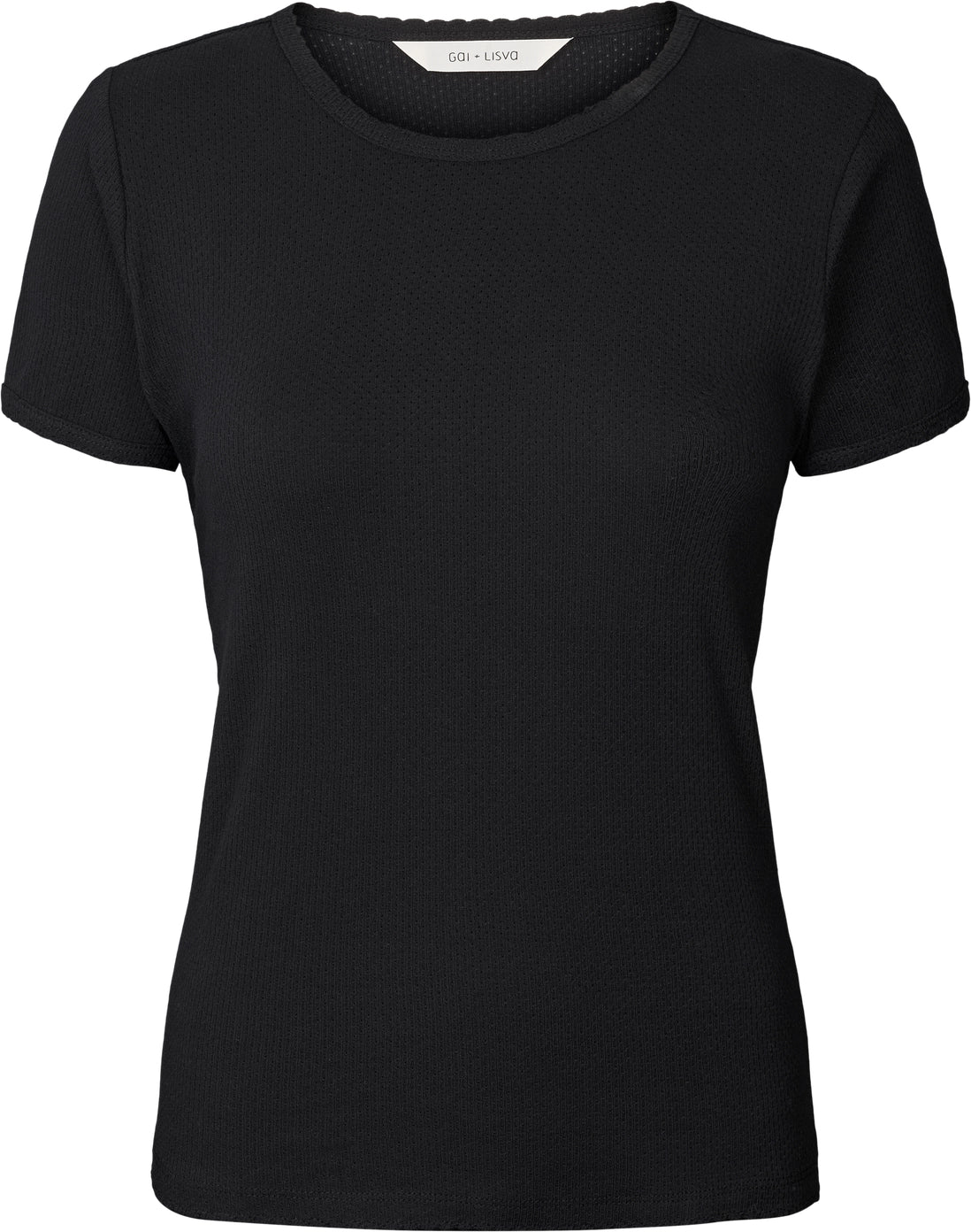 Chrisstine is a short sleeved tee shirt made of 100% organic cotton. The tee shirt has a delicate pointelle pattern and lace details on the neckline, sleeves and bottom. Chrisstine has a regular fit.