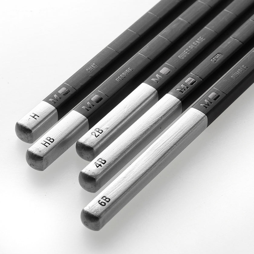Features set of 5 graded graphite pencils - 1 x H, 1 x HB, 1 x 2B, 1 x 4B, 1 x 6B;