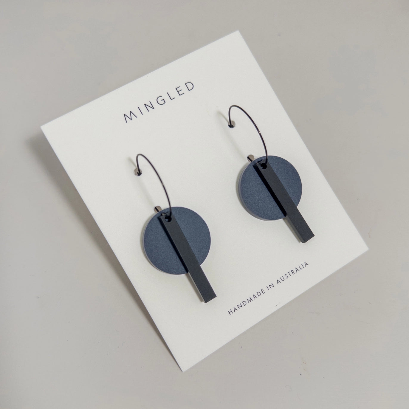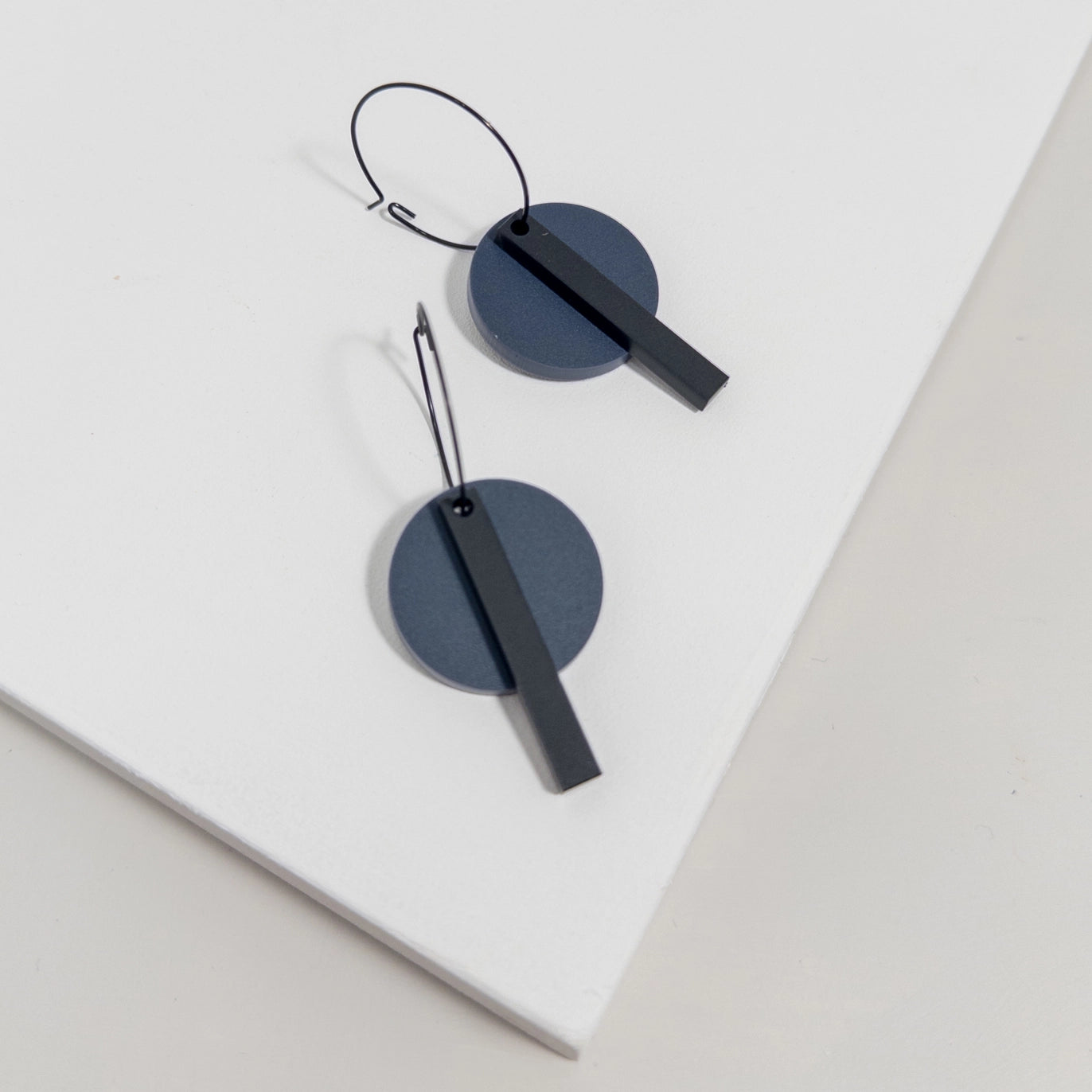 The all new 'Bar Hoop' is an ultra modern take on the classic hoop featuring a black bar combined with a simple round disc hanging from a hypoallergenic black hoop.