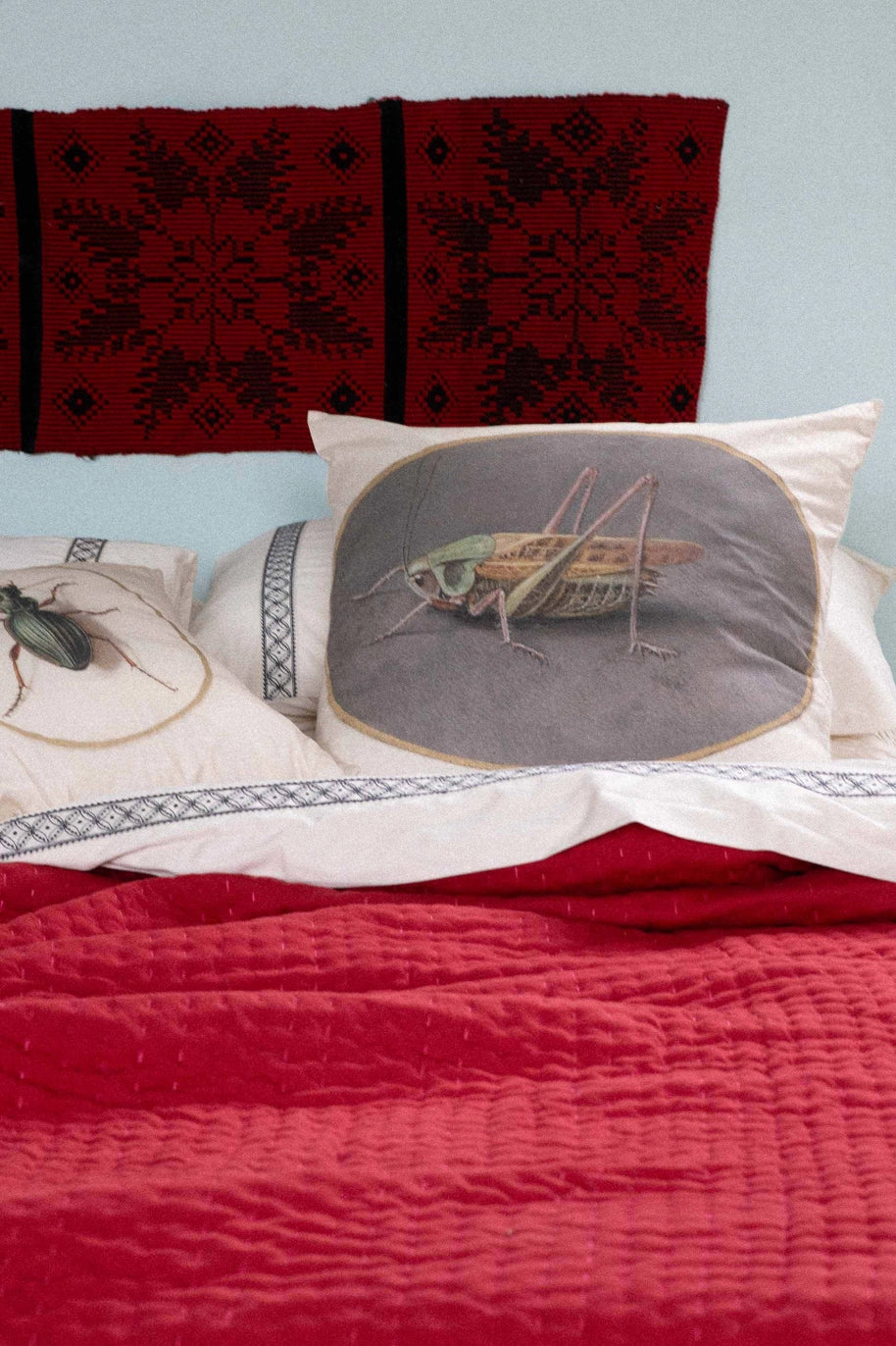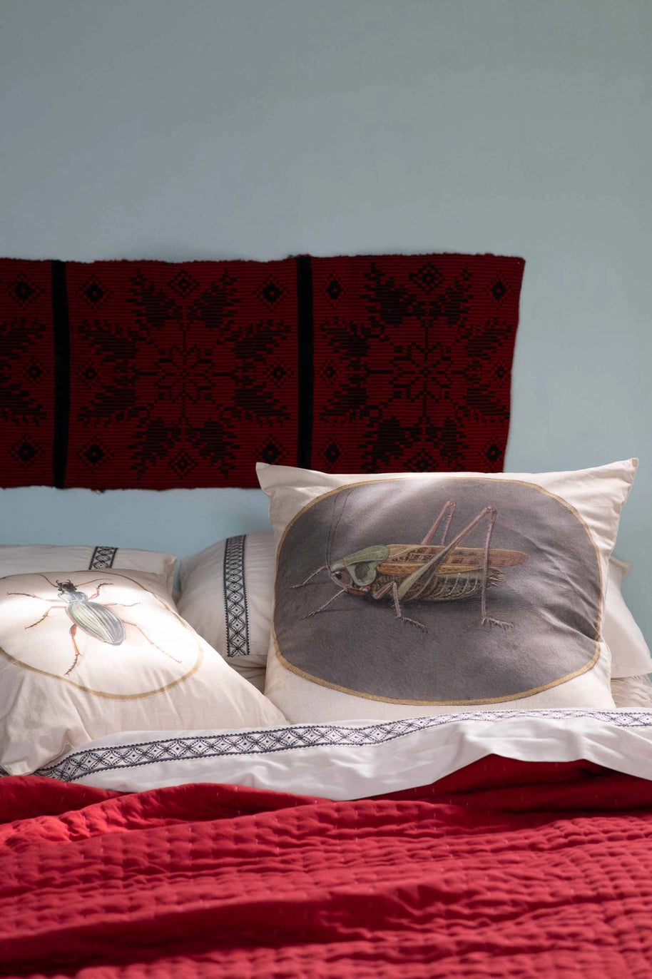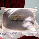 Organic cotton cushion cover featuring a digital print of artwork on the front.